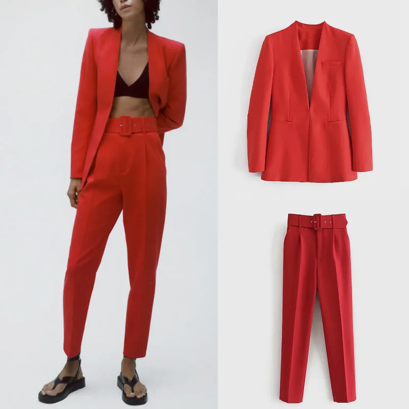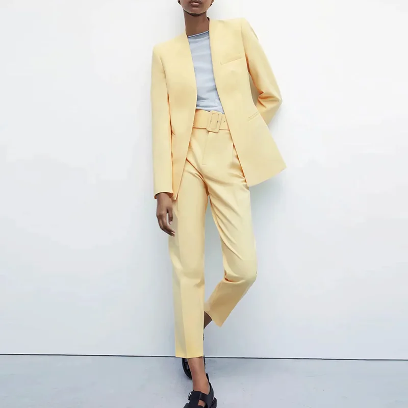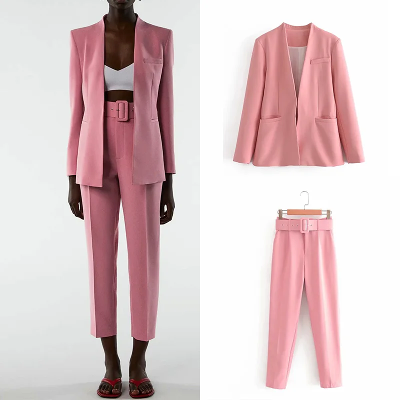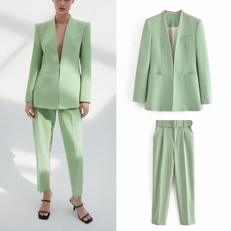 Женские блейзеры и брюки Icclek, синие куртки в комплекте, брюки с поясом, Зеленые офисные женские Спецодежда, Женская весенняя одежда