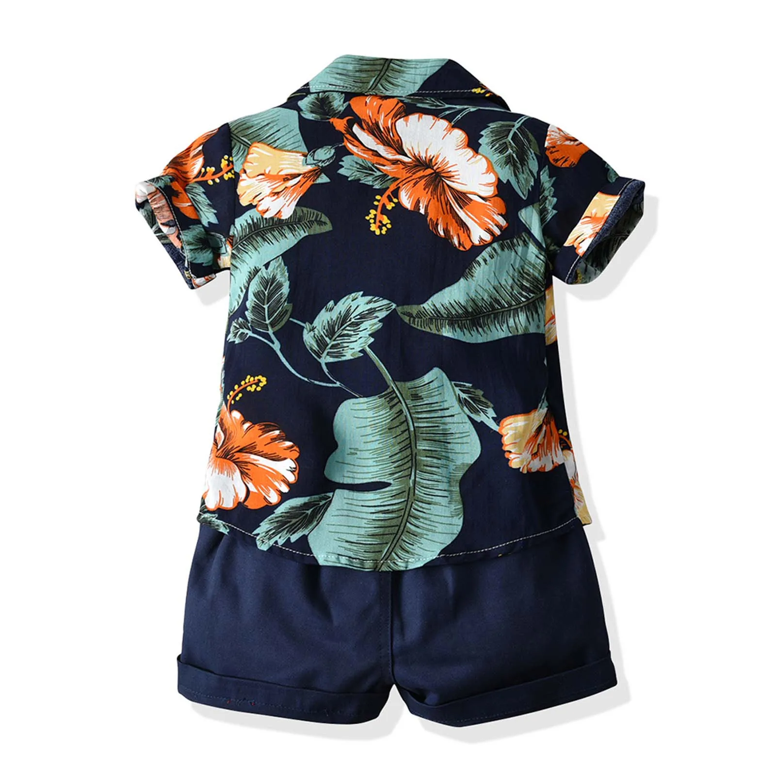 Комплект одежды Hawai для мальчиков, летняя рубашка с коротким рукавом + шорты, повседневный джентльменский костюм, детская одежда, комплекты Jongen для мальчиков, одежда для младенцев