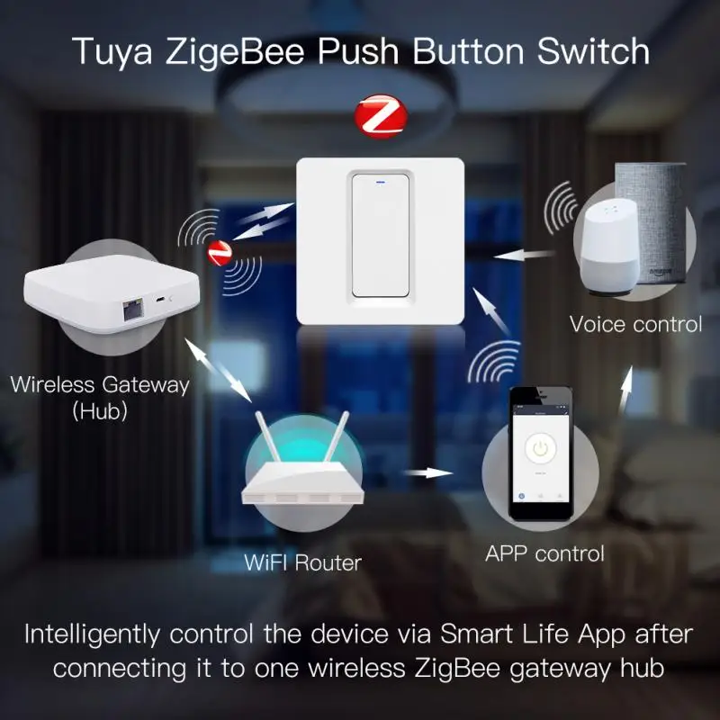 Этот переключатель использует протокол ZigBee. Используйте его с шлюзом ZigBee (не входит в посылка). Пожалуйста, приобретите шлюз ZigBee самостоятельно.