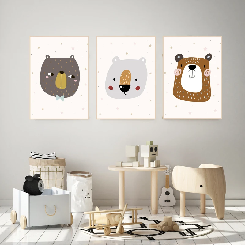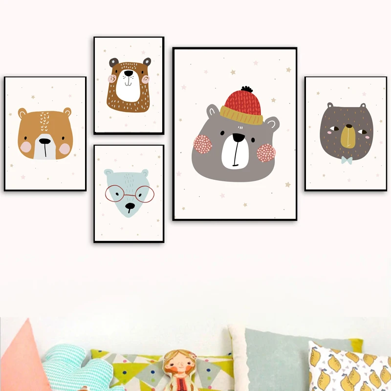 Стильная футболка с изображением персонажей видеоигр детская одежда с животными голова медведя постер для детской комнаты Печать на холсте настенная живопись Nordic Детские украшения комнаты картина