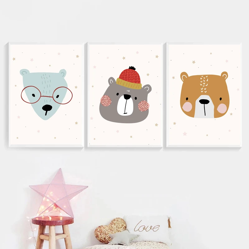 Картина на холсте в скандинавском стиле с рисунком животных, милая ...
