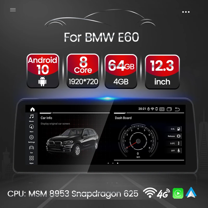 4G LTE Android 10 Автомобильный мультимедийный радиоплеер GPS-навигация для BMW 5 серии E60 E61 E63 E64 3 серии E90 E91 E92