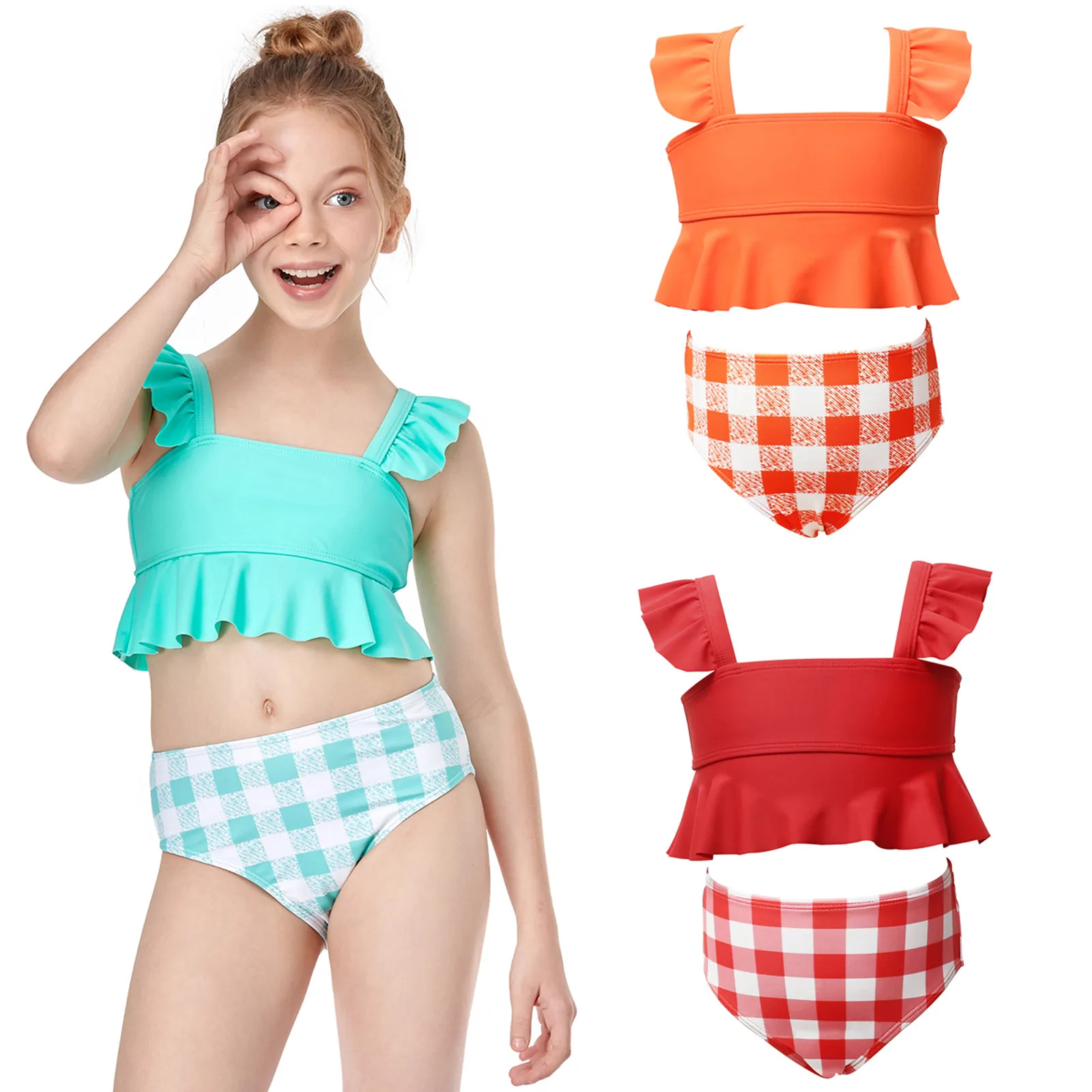 Клетчатый Купальник для девочек, купальник из двух частей, Детская ...
