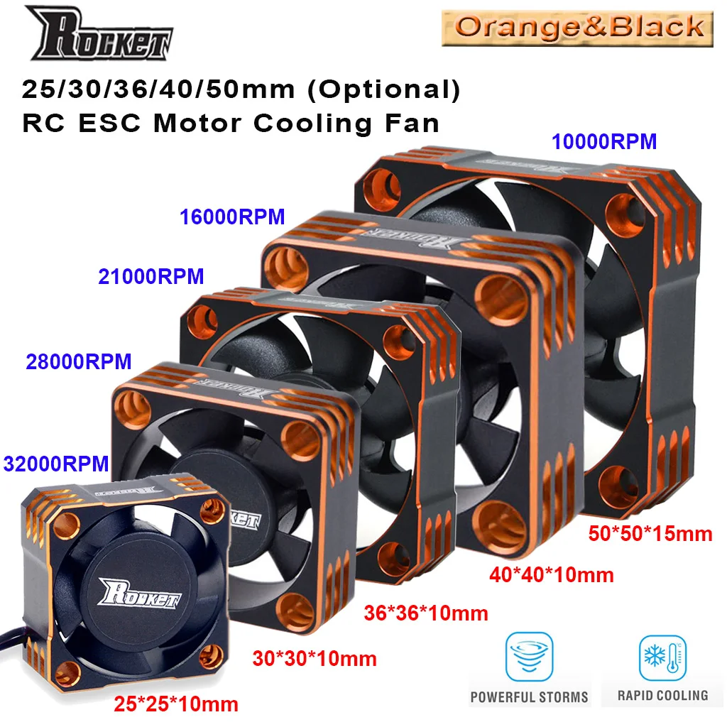 Алюминиевый металлический охлаждающий вентилятор Surpass Hobby Rocket, 25 мм, 30 мм, 36 мм, 40 мм, 50 мм, для двигателя RC ESC, теплоотвод, оранжевый и черный