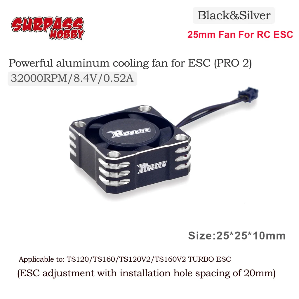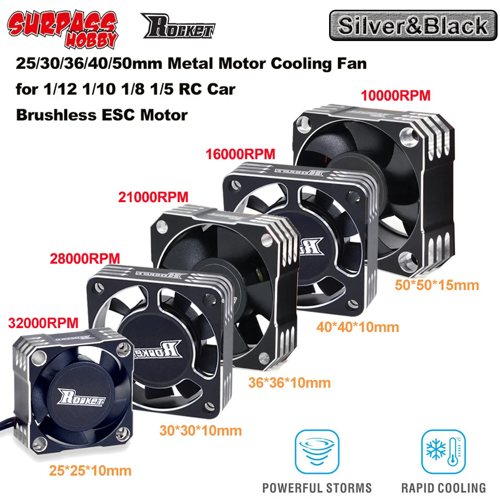 Алюминиевый металлический охлаждающий вентилятор Rocket Surpass Hobby, 25 мм, 30 мм, 36 мм, 40 мм, 50 мм, для двигателя RC ESC, рассеивание тепла, серебристый и черный