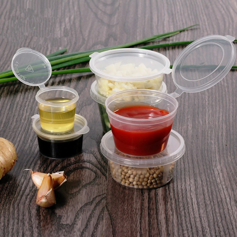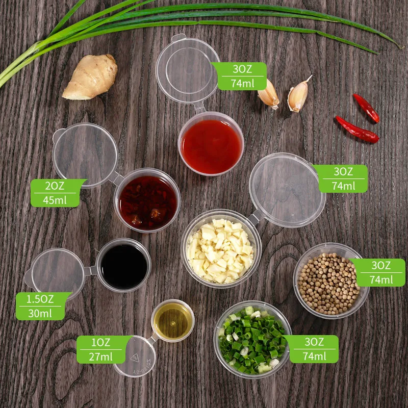 Характеристика: Изготовлен из пищевого материала PP, он является экологически чистым, безопасным и здоровым. Подходит для приправ, окунания соусов, соусов, чутни, соуса чили, приготовленной пищи и т. д. Сделайте вашу еду или приправы легкой для транспортировки на ваше мероприятие и быстро Настройте свой сервер. Использование ресторанов, деликатесов, домов и других видов деятельности имеет важное значение, а также отлично подходит для вылета. Крышки надежно подходят для удобного и санитарного хранения и отображения, что делает их транспортными и вечерние. Маленькие чашки могут быть брошены после еды, и не тратьте время на полоскание кетчупа с тарелки. Идеальный размер для салата, соуса, арахисового масла, хумуса, приправы, окуня, долива и т. Д. Параметры: Материал: Еда класс PP Ёмкость: 1oz, 1,5 oz Размеры: 1oz: 4 х 3,3 см 1,5 oz: 5,2x2,7 см Цвет: прозрачный посылка включает в себя: 10 шт одноразовые чашки для соуса