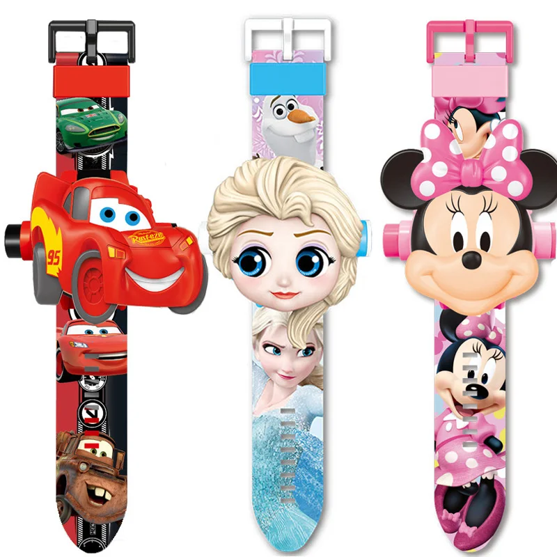 Часы Детские с 3D проекцией, резиновые цифровые наручные для мальчиков и девочек, с изображением принцессы Эльзы