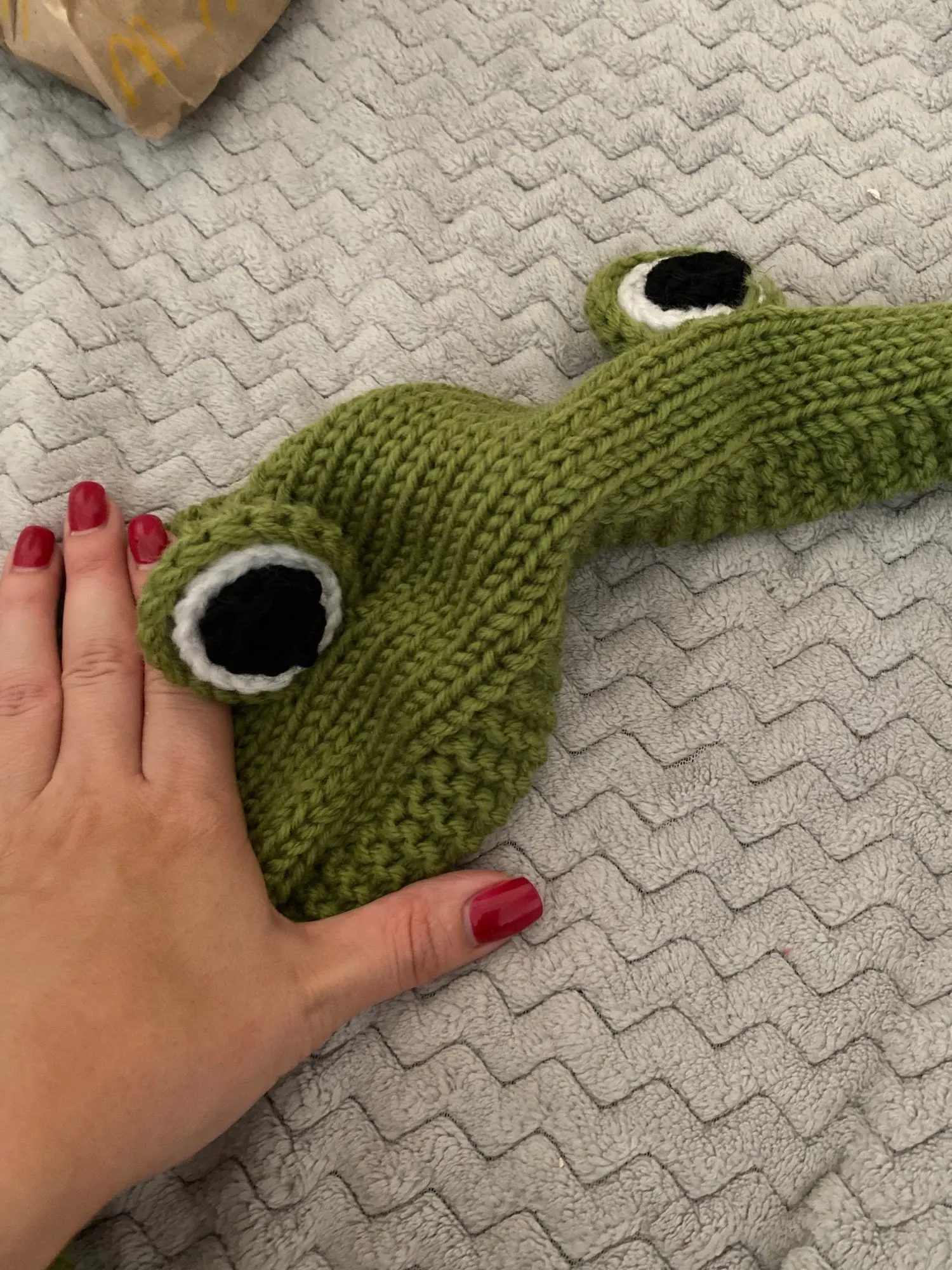 Это так мило, что мне очень нравится! Выглядит так же, как на фото, и выглядит так, будто это вязание крючком. Я в восторге, я купил коричневый цвет, и он действительно милый. Просто знайте, что это не полное покрытие, вы можете видеть свою голову сзади...