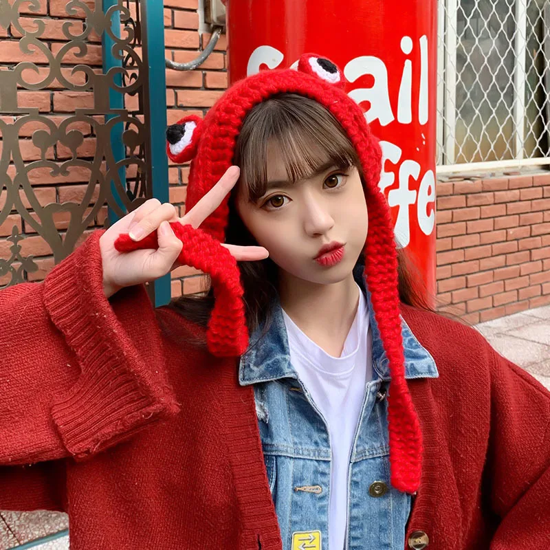 Реквизит для фотосъемвечерние, зимние шапки, милая женская вязаная шапочка, костюм, шапка, шапка, подарок для женщин, шапка в стиле хип-хоп, шляпа лягушки