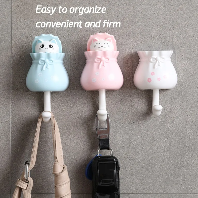 Домашние декоративные крючки с мультяшным котом, ключница, настенная клейкая вешалка для одежды вешалка для шляп, органайзер для мелочей, аксессуары