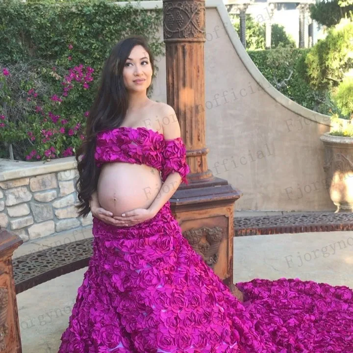 Элегантный, модный комплект из двух вещей, платье для беременных для фотосессии ручной работы; Платье с цветочным рисунком розового цвета беременным женщинам Для летних вечеринок платье