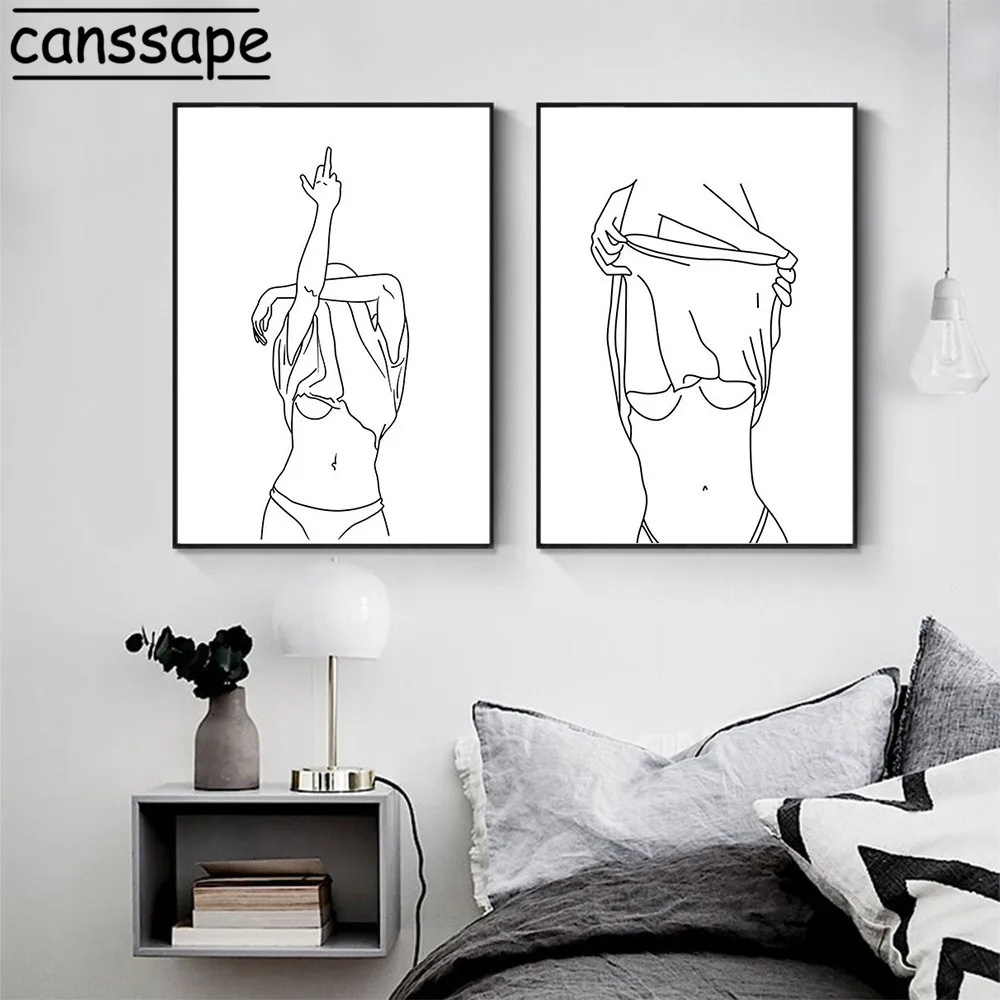 Абстрактная живопись минималистичные черно-белые настенные постеры обнаженное тело холст печать скандинавские настенные картины для ванной постер Декор