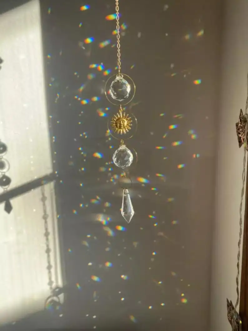 Ловец Солнца пришел в идеальном состоянии. Я очень доволен ценой и тем, насколько мило. Я бы хотел, чтобы цепочка была длиннее, чтобы я мог повесить ее, но я знаю, что получил. Делает маленькие радуги при подвешивании в большом пространстве.