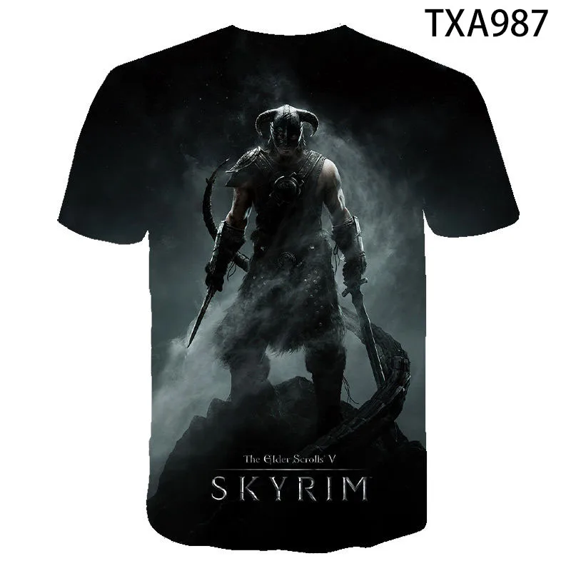 Новинка, летняя футболка Skyrim с 3D принтом для мужчин, женщин и детей, Повседневная Уличная одежда, модные крутые Топы с коротким рукавом для мальчиков и девочек