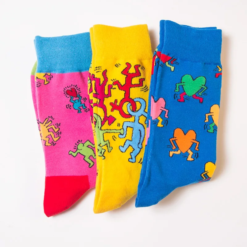 Носки мужские разноцветные из чесаного хлопка, с принтом, европейские размеры 38-45, 1 пара