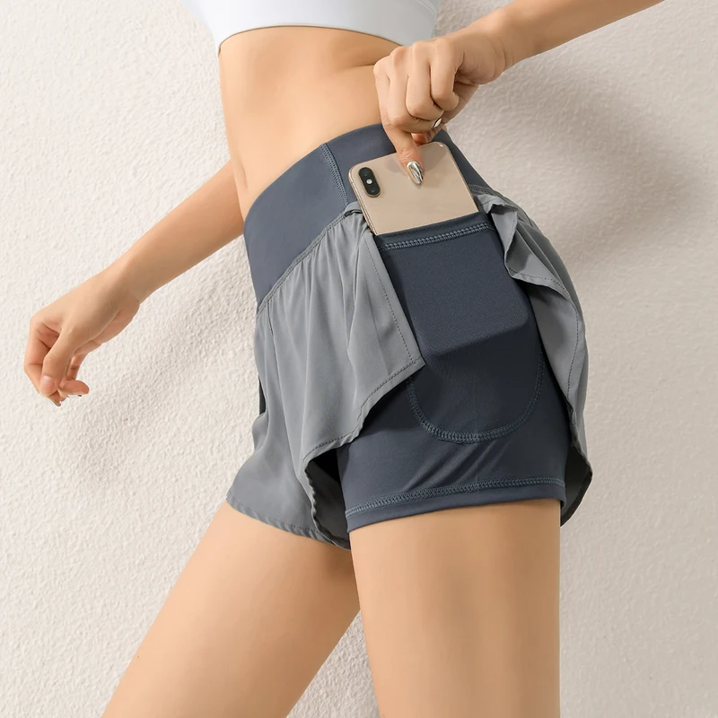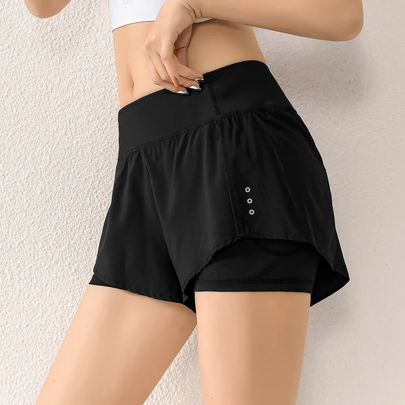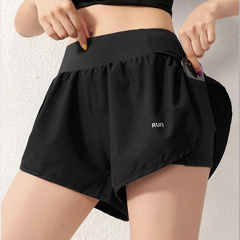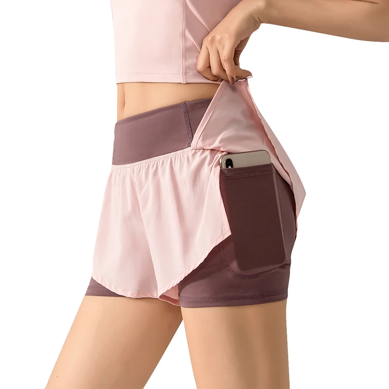 Особенности:Посылка включает в себя: женские шорты для йогиРазмер: S-XLМатериал: полиэстерТип: твердый2021 женские спортивные двойные шорты с боковыми карманами, дышащие быстросохнущие шорты для йоги, женские шорты для тренировок, фитнеса, спортивной одежды.