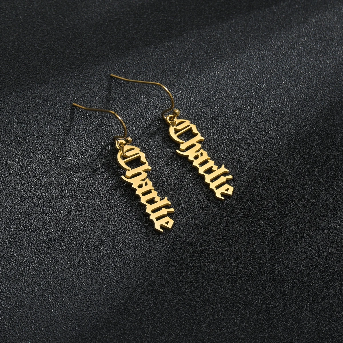 FeatureOld English Name Earrings,Gothic Letter nameplate earring