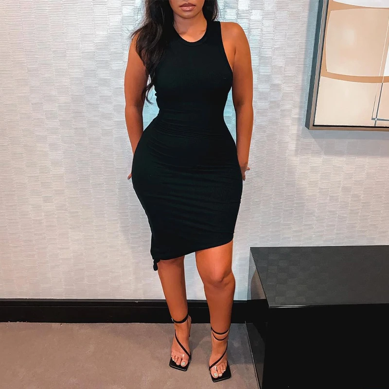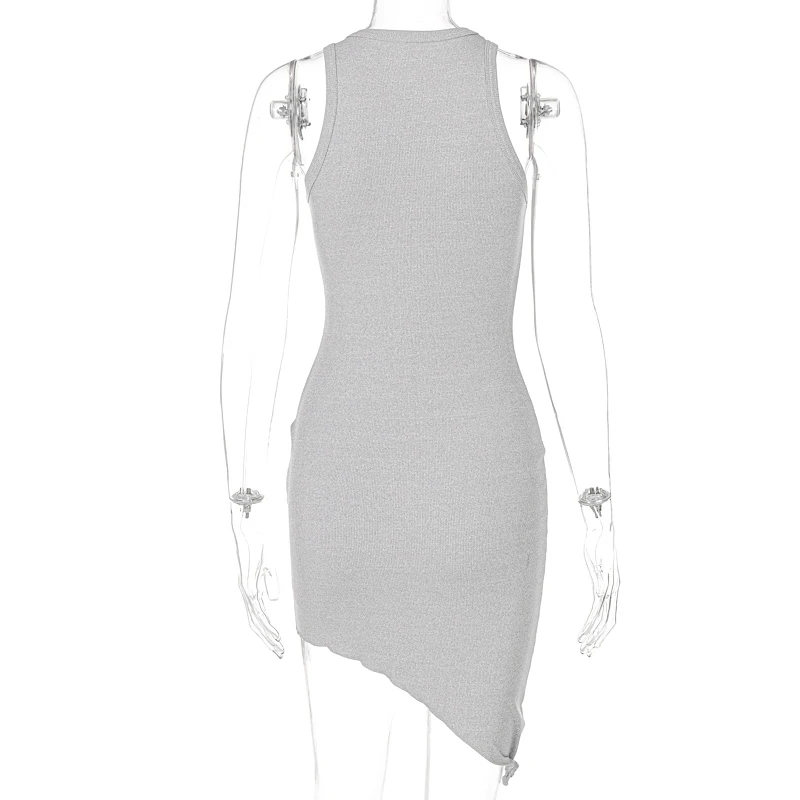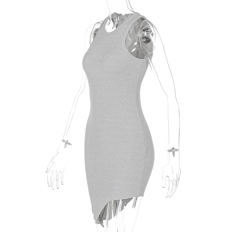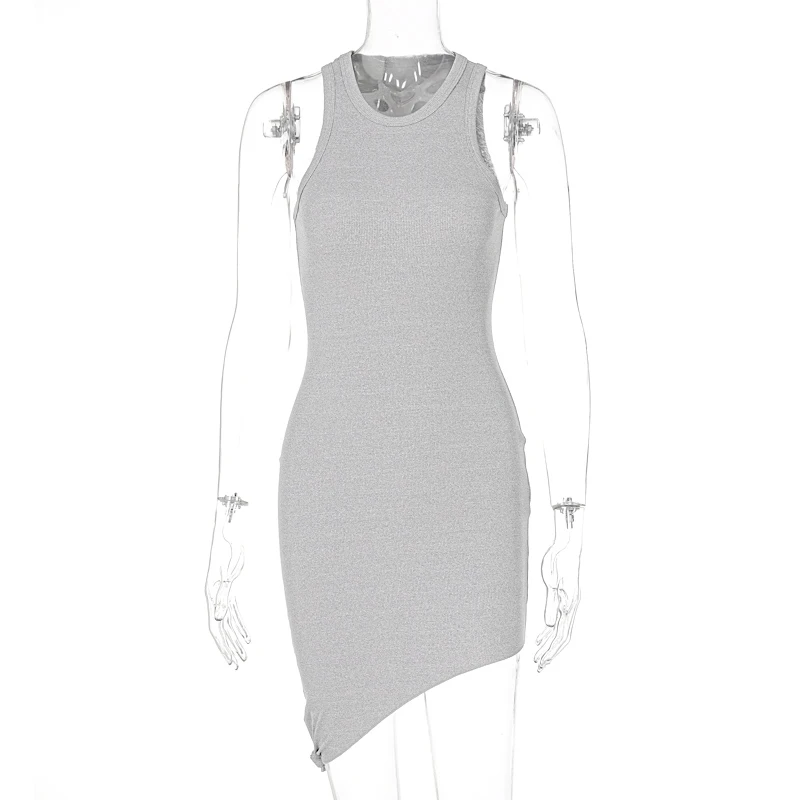 Женское трикотажное Асимметричное мини-платье в рубчик с круглым вырезом и бантом, повседневная одежда для вечеринок, лето 2021