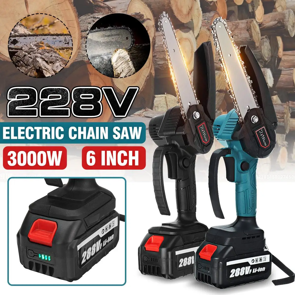 3000W 6 дюймов 288V Мини электрическая пила с Батарея индикатор беспроводной обрезная пила сад обрезная деревообрабатывающая резак Мощность инструмент