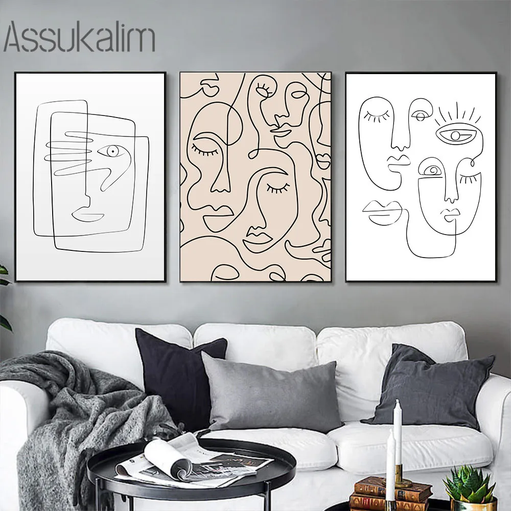 Уход за кожей лица линия художественная роспись Абстрактная настенный плакат минималистский холст печати северных Плакаты современные принты Boho фотографии Декор в гостиную