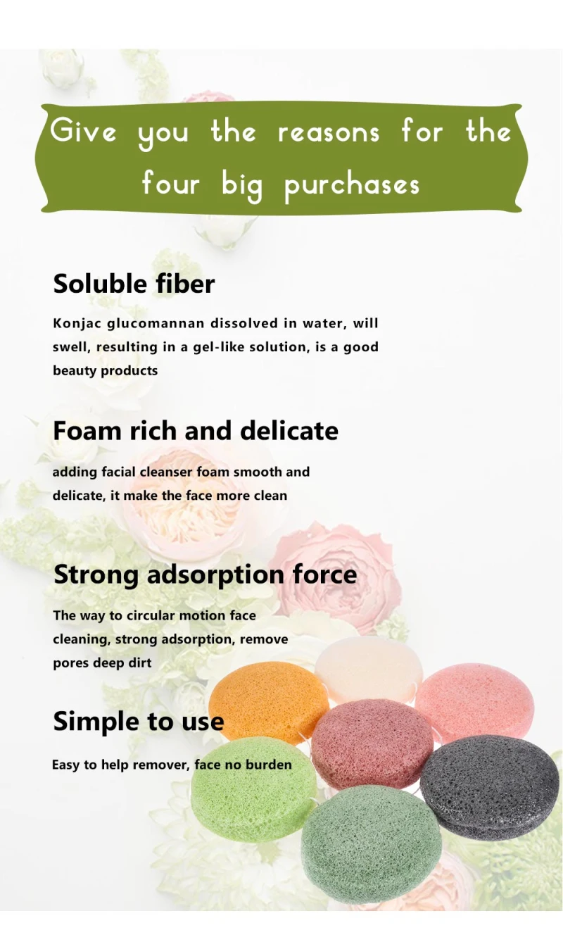 1 шт. Отшелушивающий спонж для очищения коньяка спонж Конняку натуральный Губка для мытья и уборки Макияж для лица круглая форма Косметический спонж для умывания 6 цветов