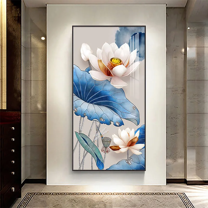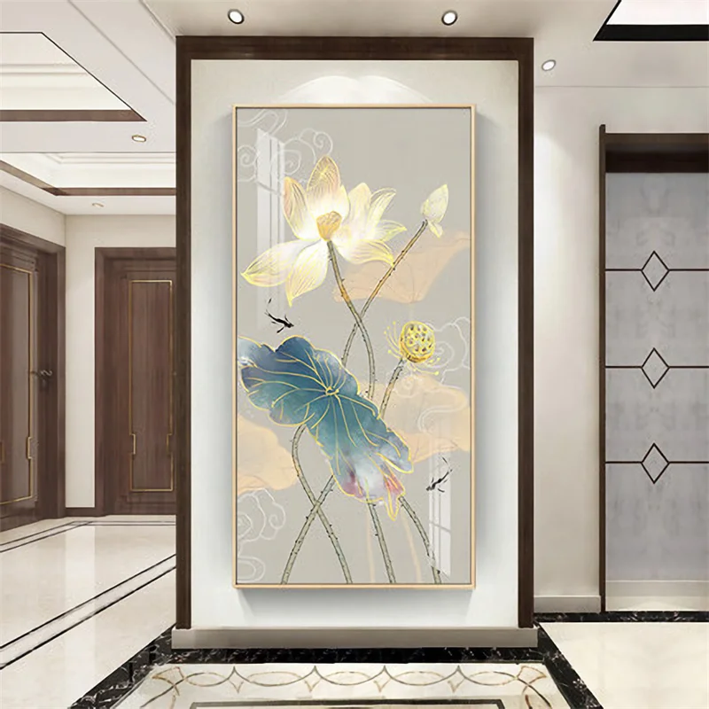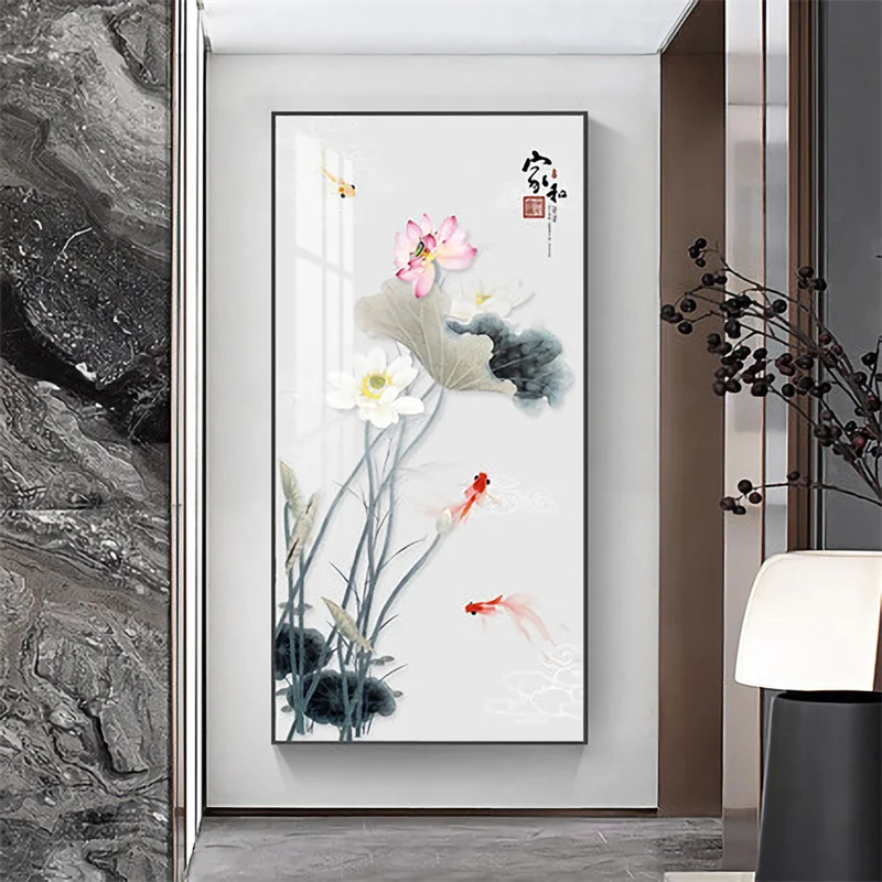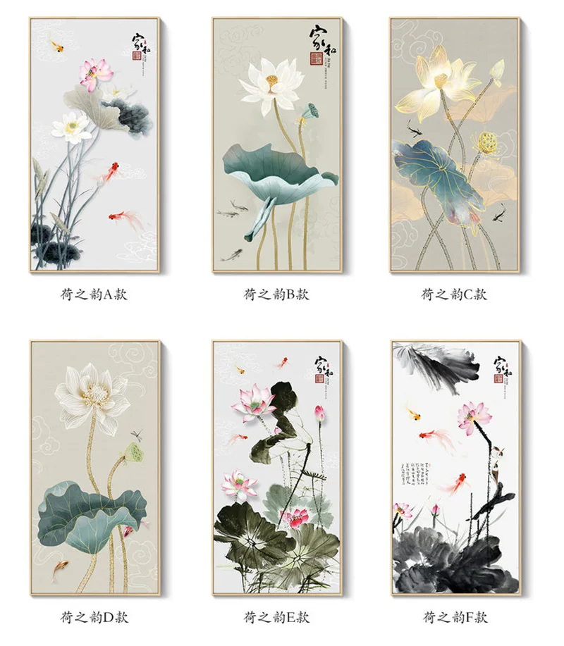 Настенная картина в традиционном китайском стиле, постер с изображением цветов лотоса, кои, рыбок, для офиса, гостиной, домашнего декора