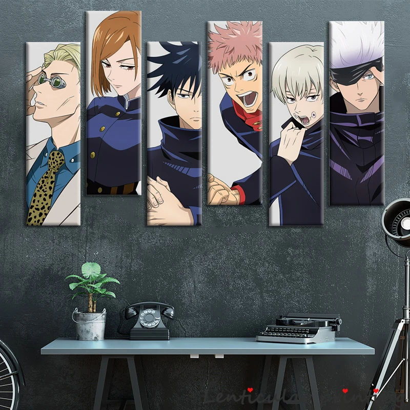 6 шт. аниме юютсу касин постер шесть персонажей аниме Сатору годжо картина Печать масляная живопись холст настенное искусство Sukuna украшение
