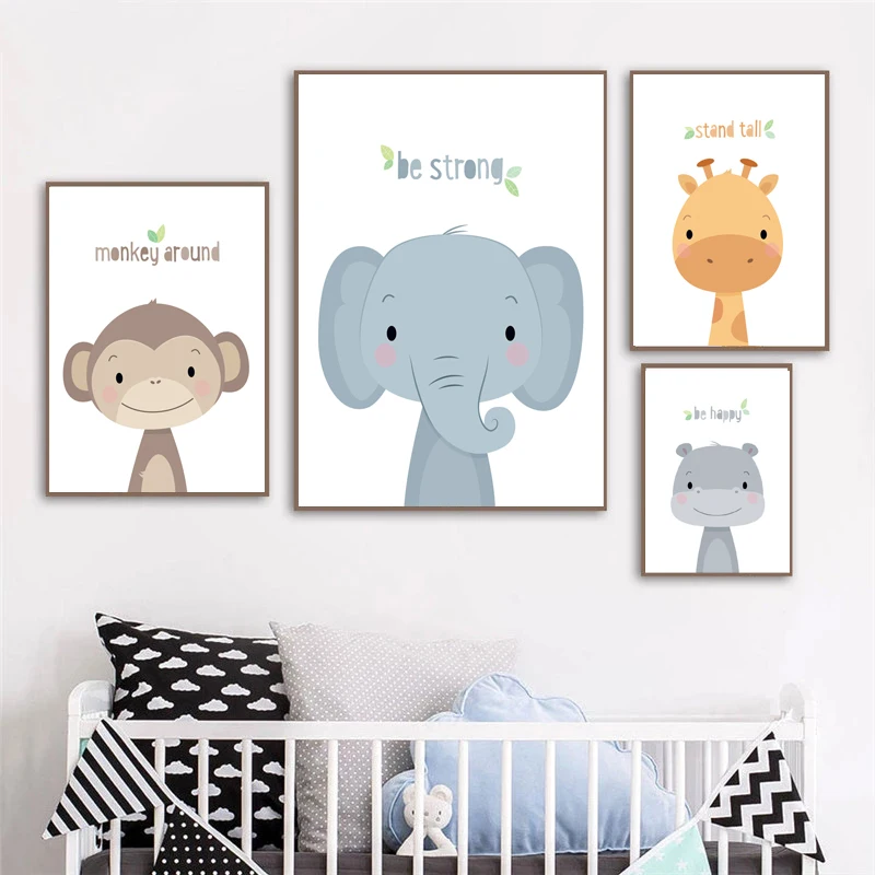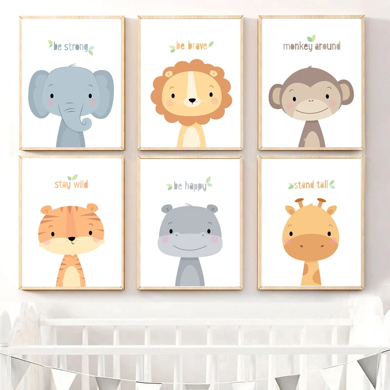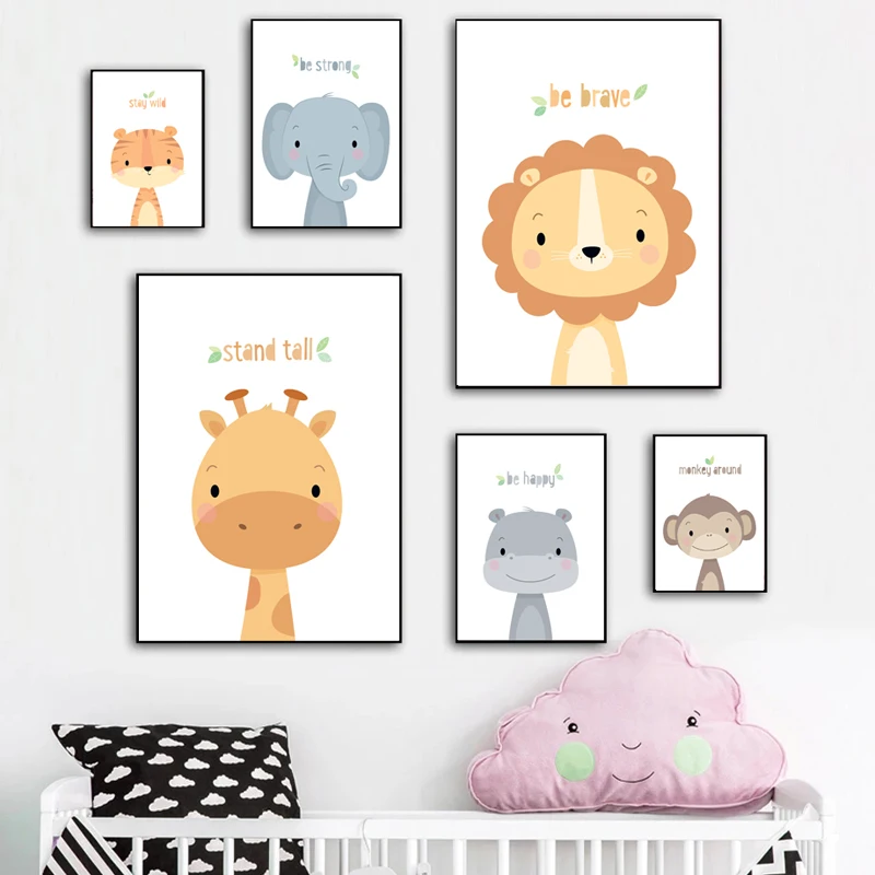 Милые Мультяшные Животные декоративные картины лев ребенок слон Дет...