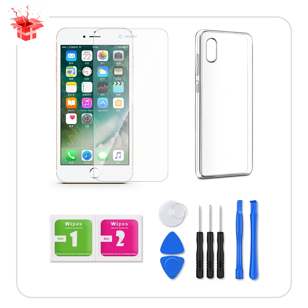 Package including1pcs screen + 1pcs glass + 1pcs case + 1set tools