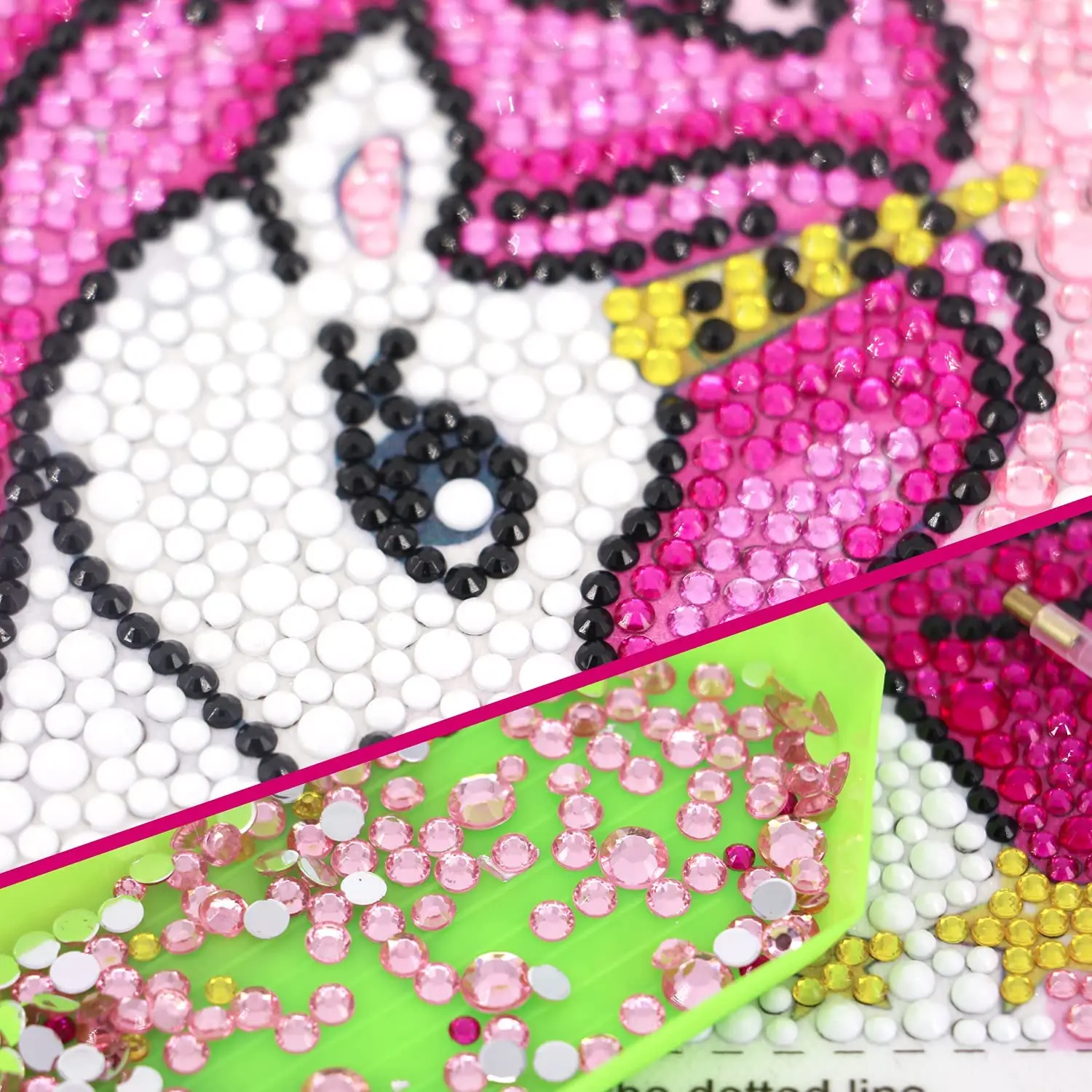 -На каждой наклейке есть соответствующие номера, которые отмечают места, на которые вы приклеиваете стразы, что позволяет новичку легко положить яркий драгоценный камень на наклейку и наслаждаться своими поделками.