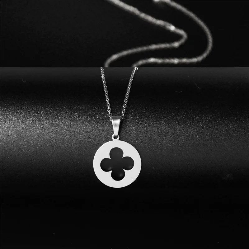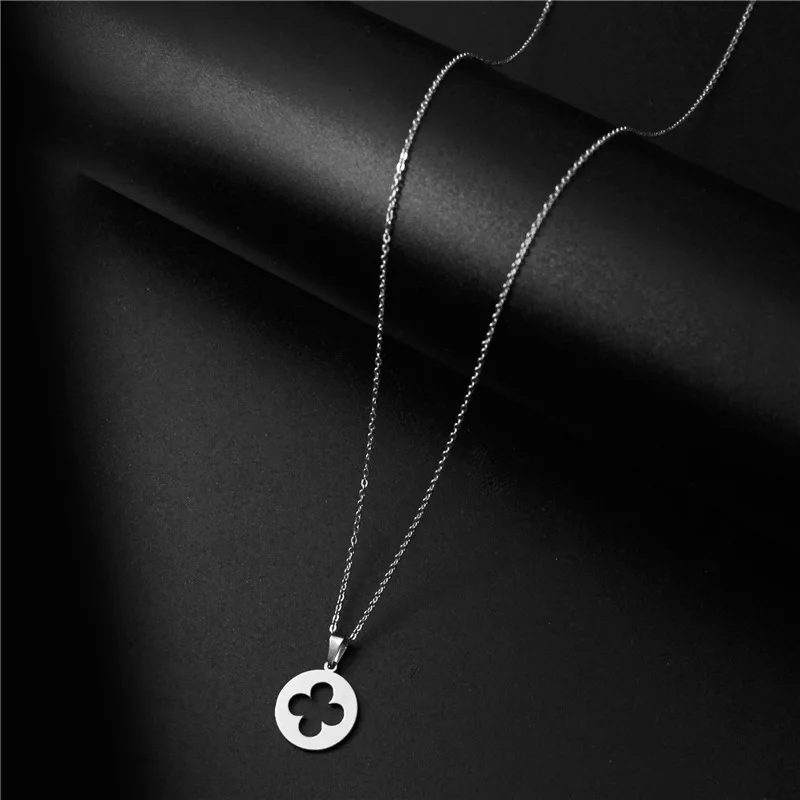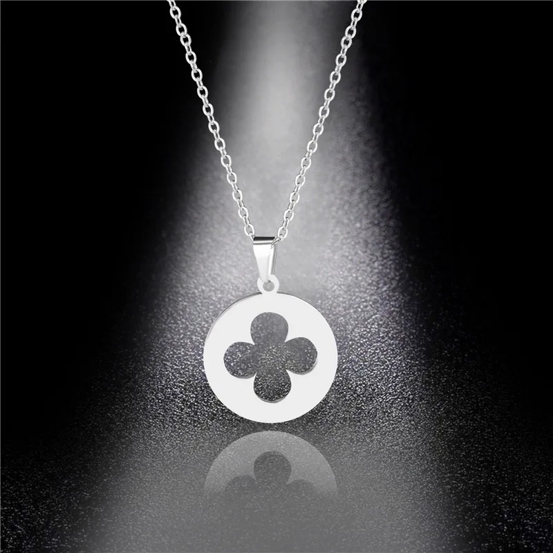 Из нержавеющей стали с четырьмя листами, ожерелье с подвеской для женщин цветок контракт темперамент колье круглые Изящные миниатюрных девушек ювелирное изделие, подарок