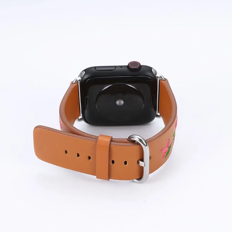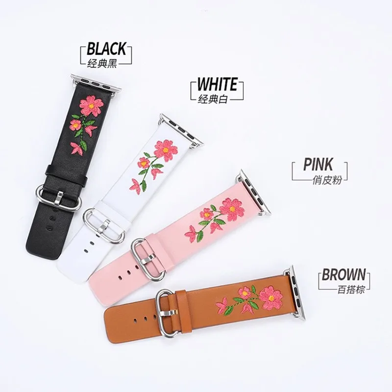 Кожаный ремешок для Apple watch band 38 мм 42 мм, аксессуары для смарт-часов с вышивкой в виде цветов, браслет для iWatch series 1 2 3