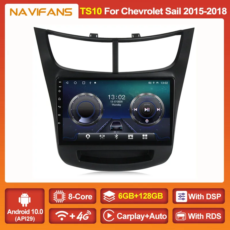 Автомобильный мультимедийный плеер 2 Din с GPS-навигацией, Android 11 DSP для Chevrolet Sail Aveo 2015 2016 2017 2018, 4G + WiFi BT