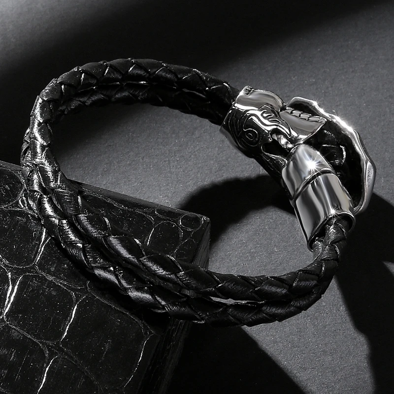 Мужской кожаный браслет в стиле панк-рок, из нержавеющей стали