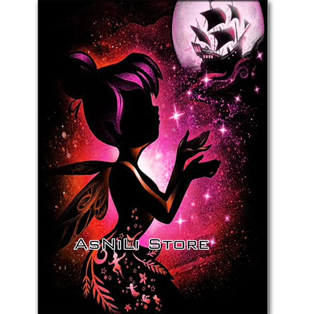 5d алмазная живопись сделай сам, Русалка, принцесса, луна, лодка, алмазная вышивка, полностью Круглая Мозаика, инкрустированный алмазами узор, подарок для детей