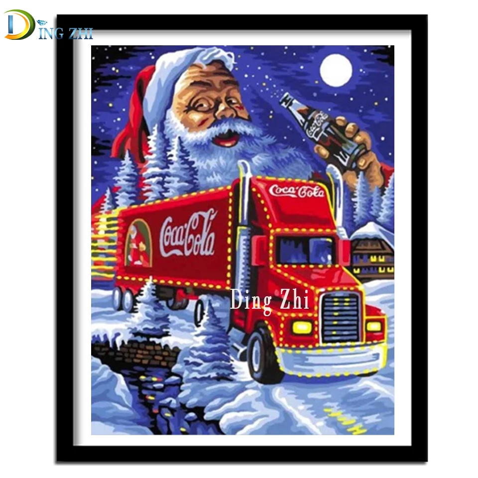 Алмазов картина 5D DIY рождественская Алмазная вышивка подарок Санта грузовик полный раундквадратная мозаика зимние сцены, с мультяшными принтами