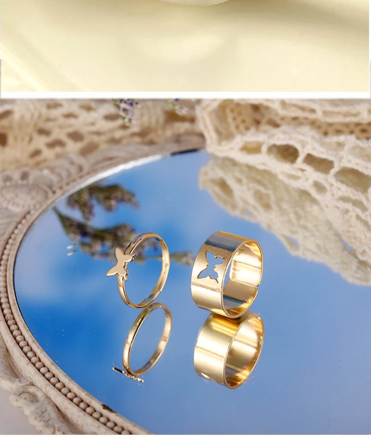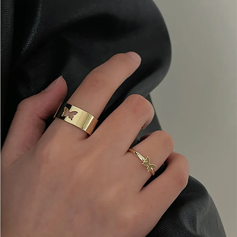 2 шт Бабочка пара регулируемое открытие кольцо Набор для женщин мужчин унисекс золото серебро цвет металлические кольца трендовые ювелирные изделия