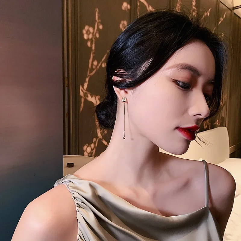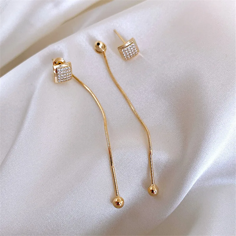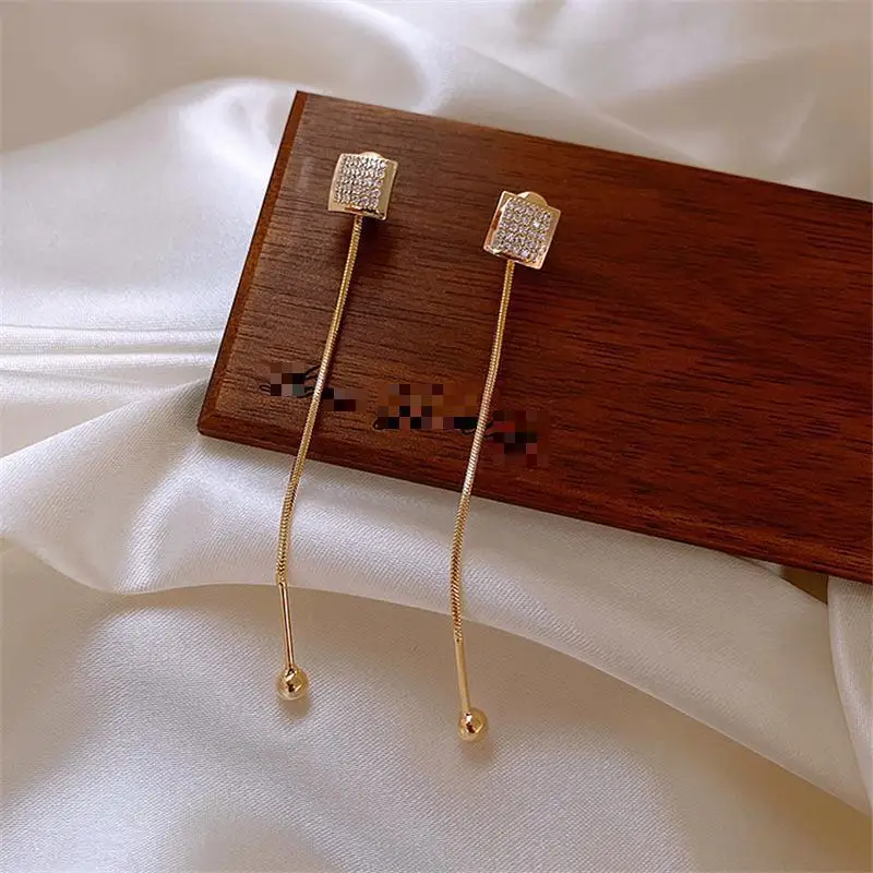 Стразы игольчатые из серебра серьги с металлическими кисточками пробы, маленькие, квадратные, Длинные