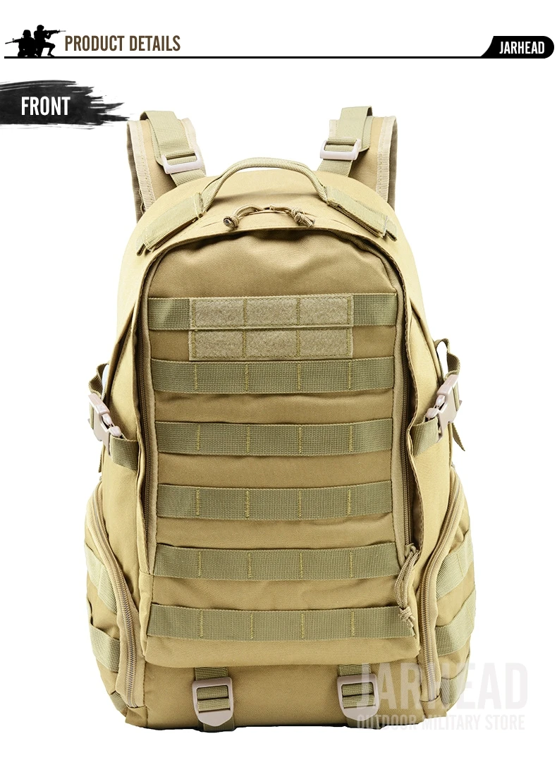 Пошито очень качественно - каждое соединение двумя ровными швами . По 2 бегунка с петелькой на каждой молнии. Материал очень прочный, прорезиненный. Крепления molle сделаны качественно и расположены максимально по площади. Сам рюкзак не большой (на выход норм). Отличная фиксация плечевая и поясная. Рекомендую как второй рюкзак.