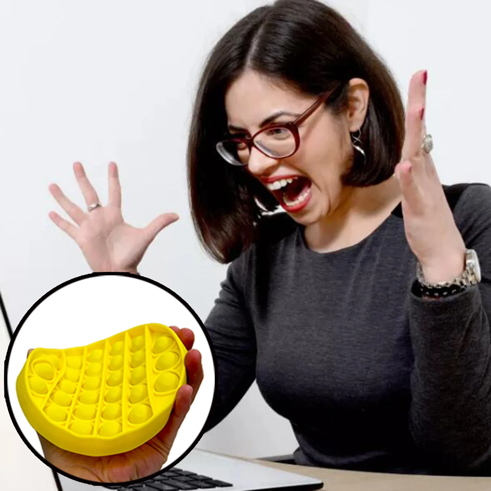 Особенности: Когда-нибудь ловите своих детей или, возможно, даже себя, выскакивая пузырчатую пленку прямо из коробки упаковки? Тогда вам понравится этот пузырь Непоседа. Усть нажмите на пузырьки мыши вниз, и они делают легкий звук; Затем переверните его и начните снова! Бесконечно многоразовые и моющиеся.