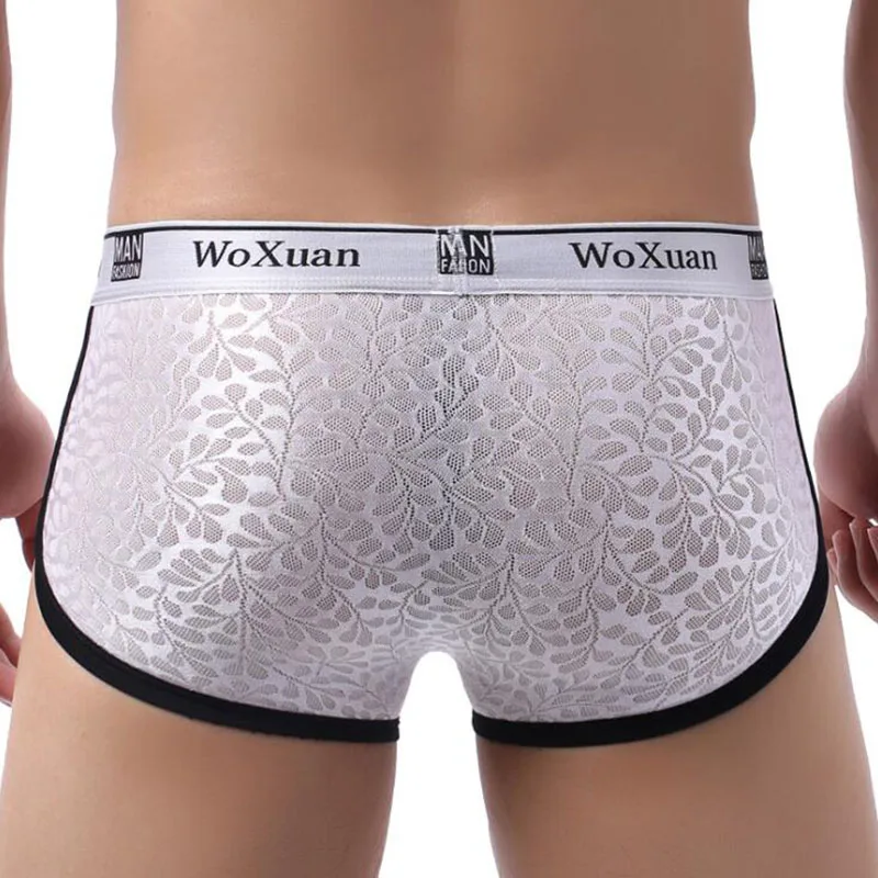 Кружевное нижнее белье, мужские боксеры, шорты, модные мягкие трусы, мужские сексуальные прозрачные сетчатые трусы