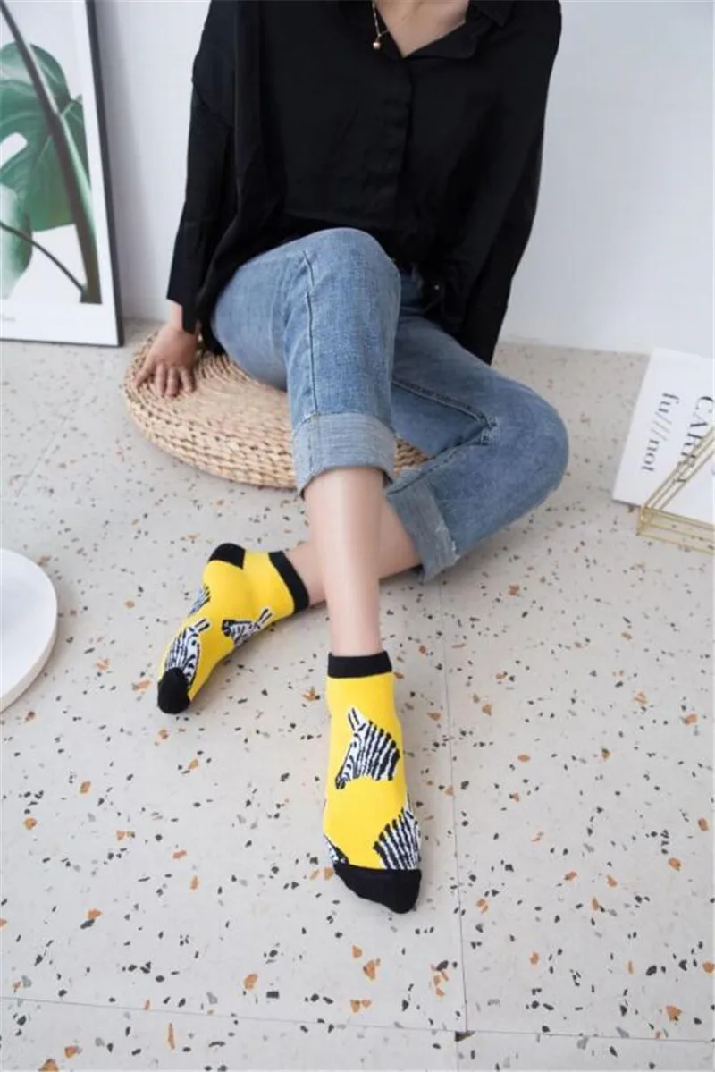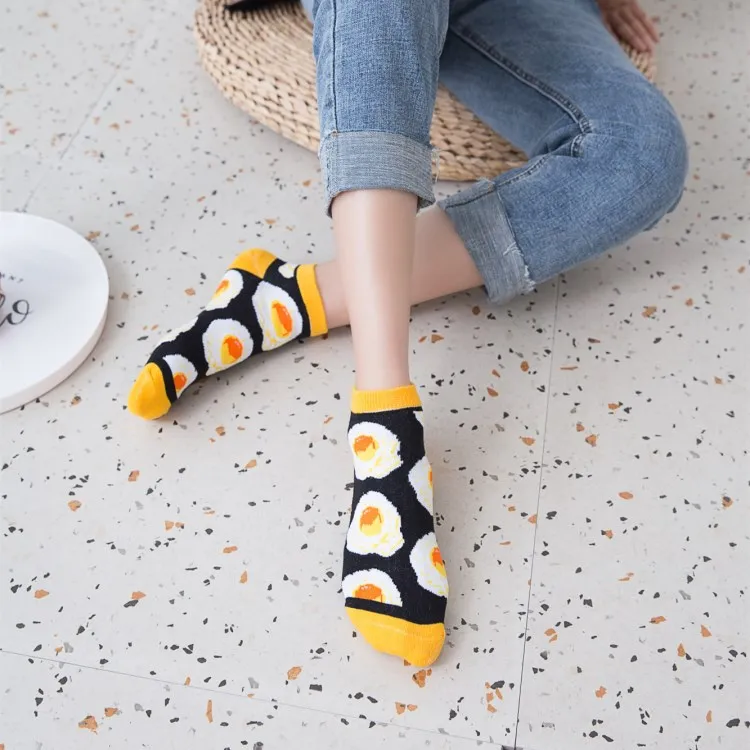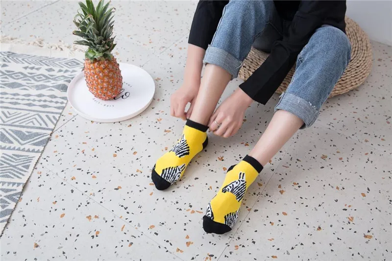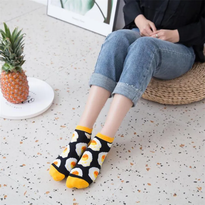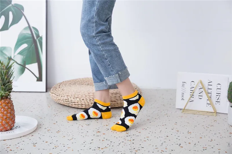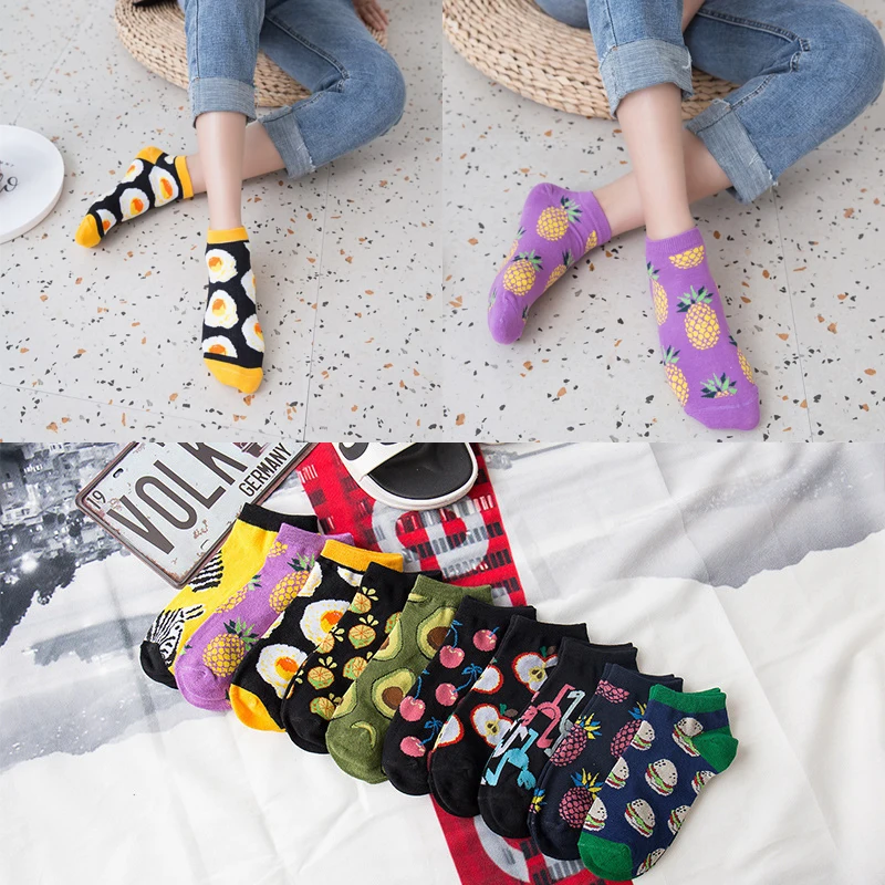 Носки хлопковые унисекс в стиле Харадзюку, классические короткие милые тапочки-носки с фруктами, авокадо, зеброй, яйцами, носки-лодочки, 1 пара, на лето