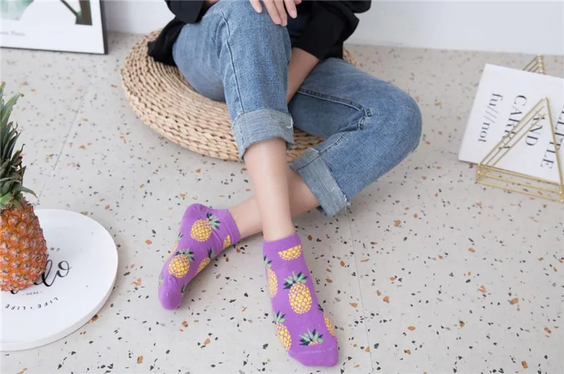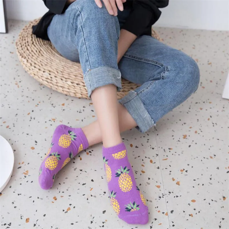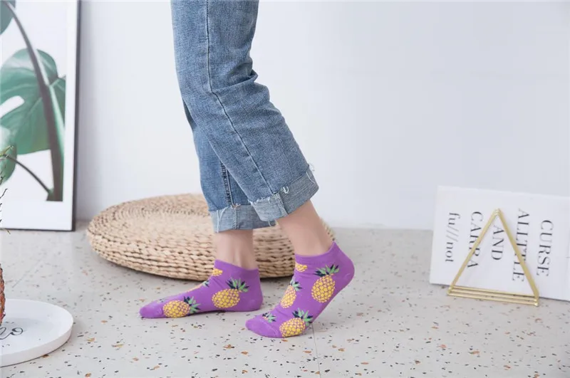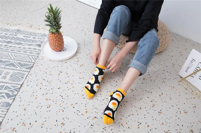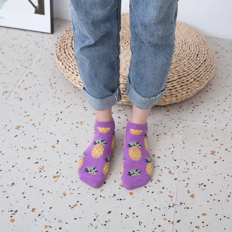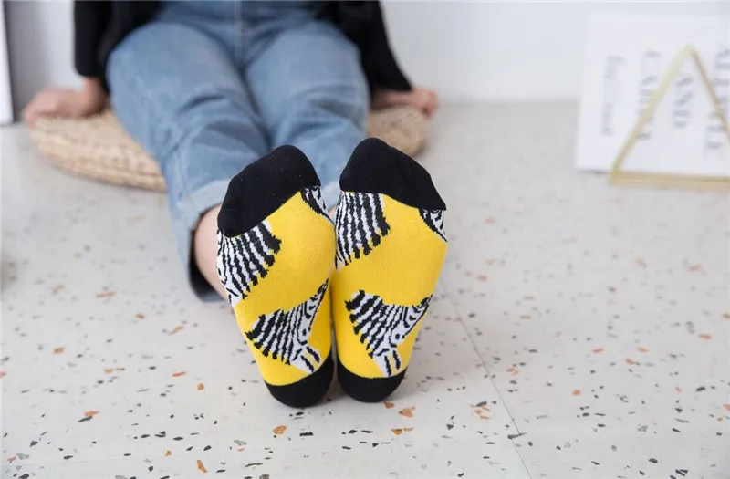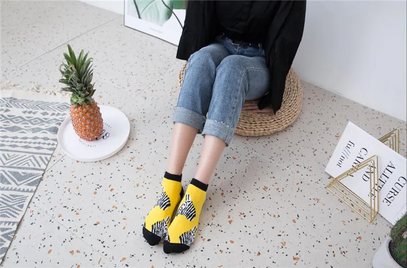 Носки хлопковые унисекс в стиле Харадзюку, классические короткие милые тапочки-носки с фруктами, авокадо, зеброй, яйцами, носки-лодочки, 1 пара, на лето