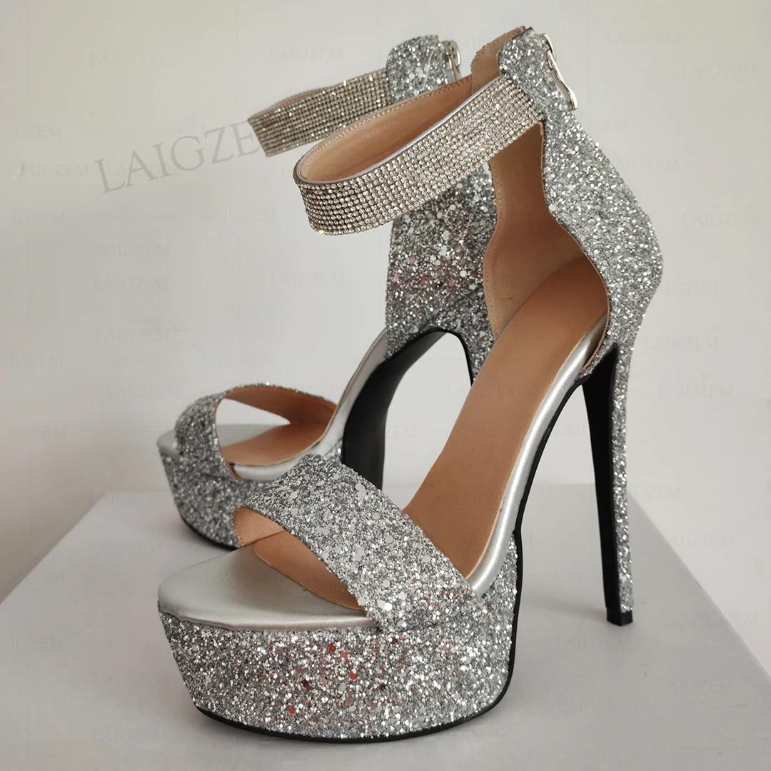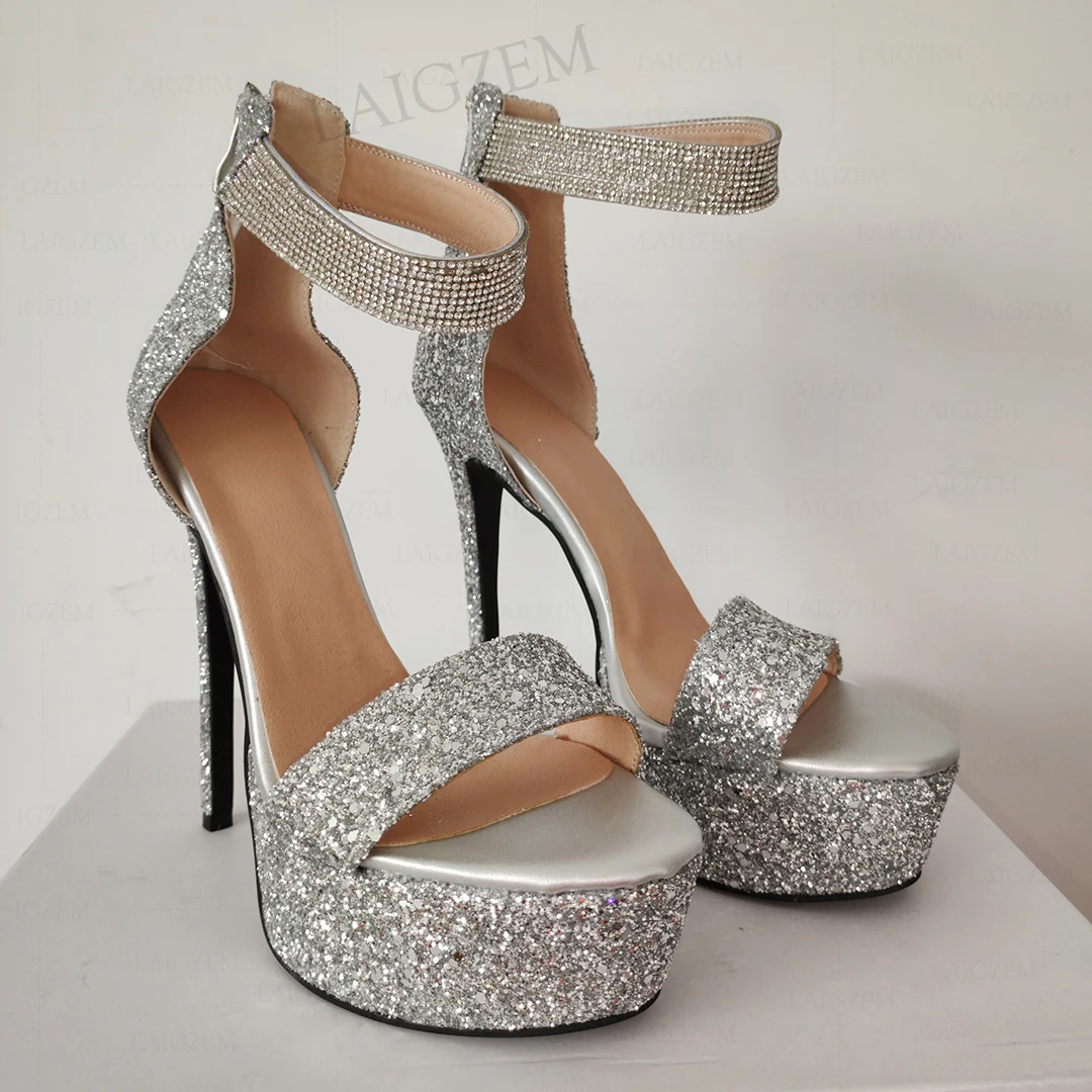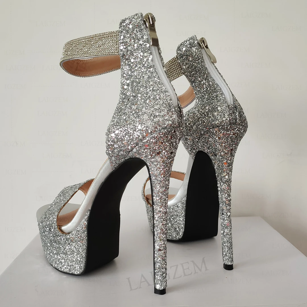 SEIIHEM/шикарные женские босоножки на платформе, с молнией сзади, с блестящим носком, на шпильке, Sapato, женские туфли на свадьбу и выпускной, большие размеры 41, 46, 50, 52
