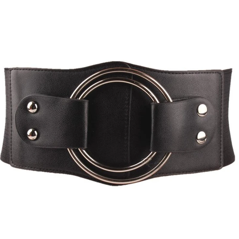 Винтаж широкий пояс эластичный Ремни для Для женщин эластичный корсетный пояс из полотого металла большое кольцо Для женщин пояс преувеличенный поясной ремень