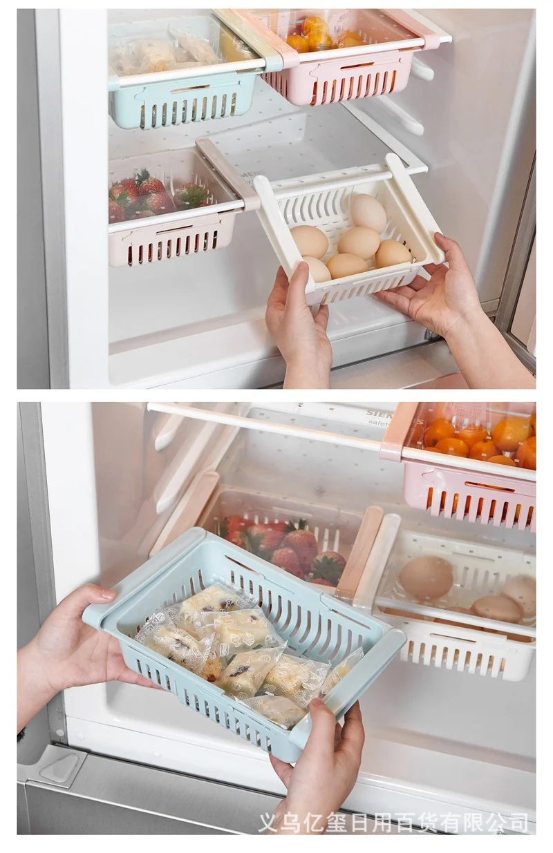 Стильная Регулируемая Выдвижная коробка для хранения холодильника, корзина для ящика, выдвижная корзина для холодильника, полка для хранения свежих отсеков