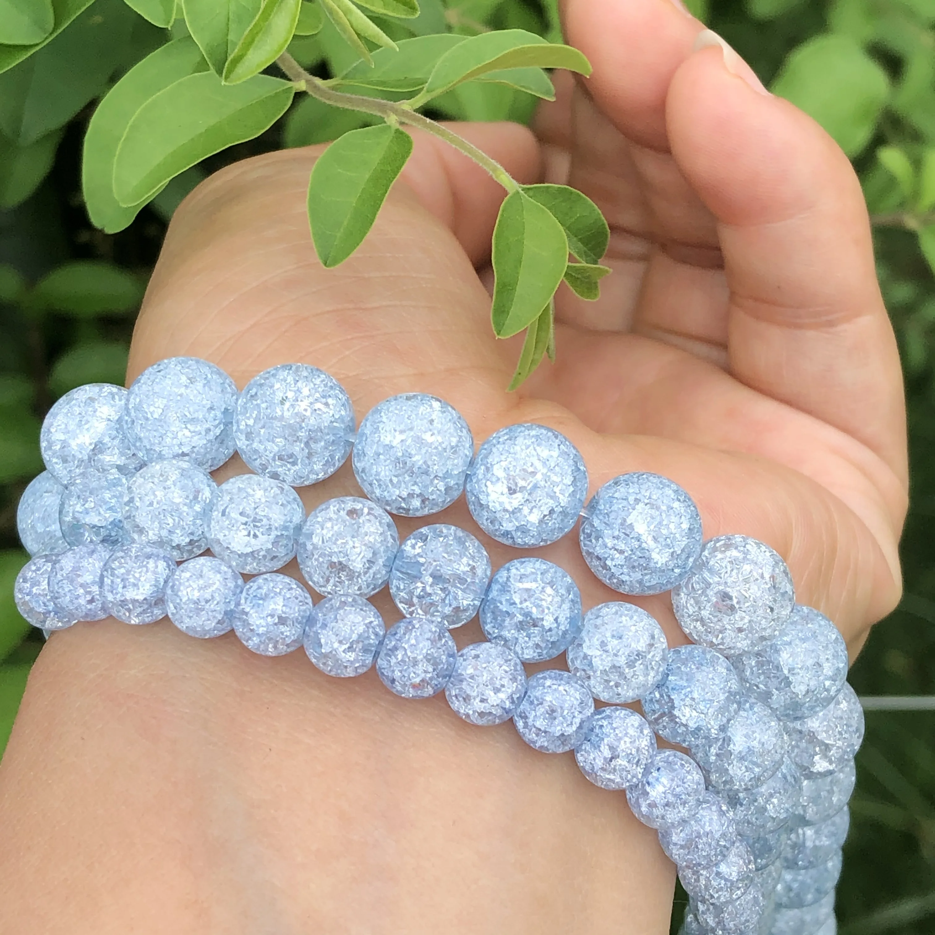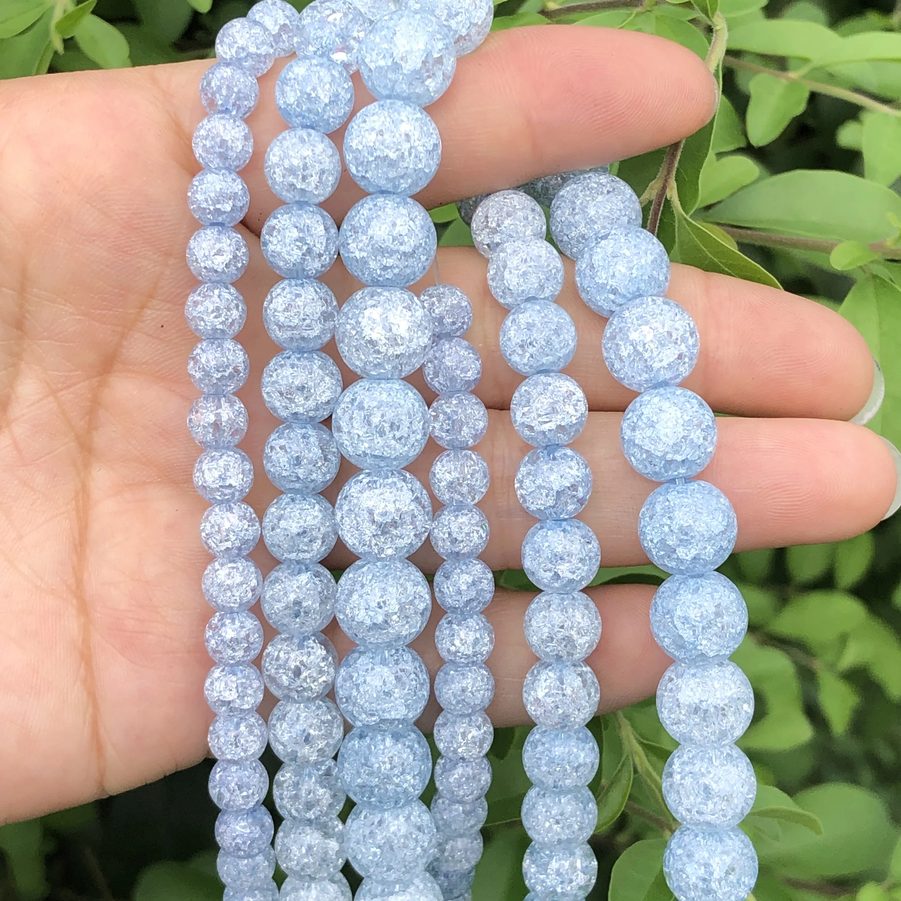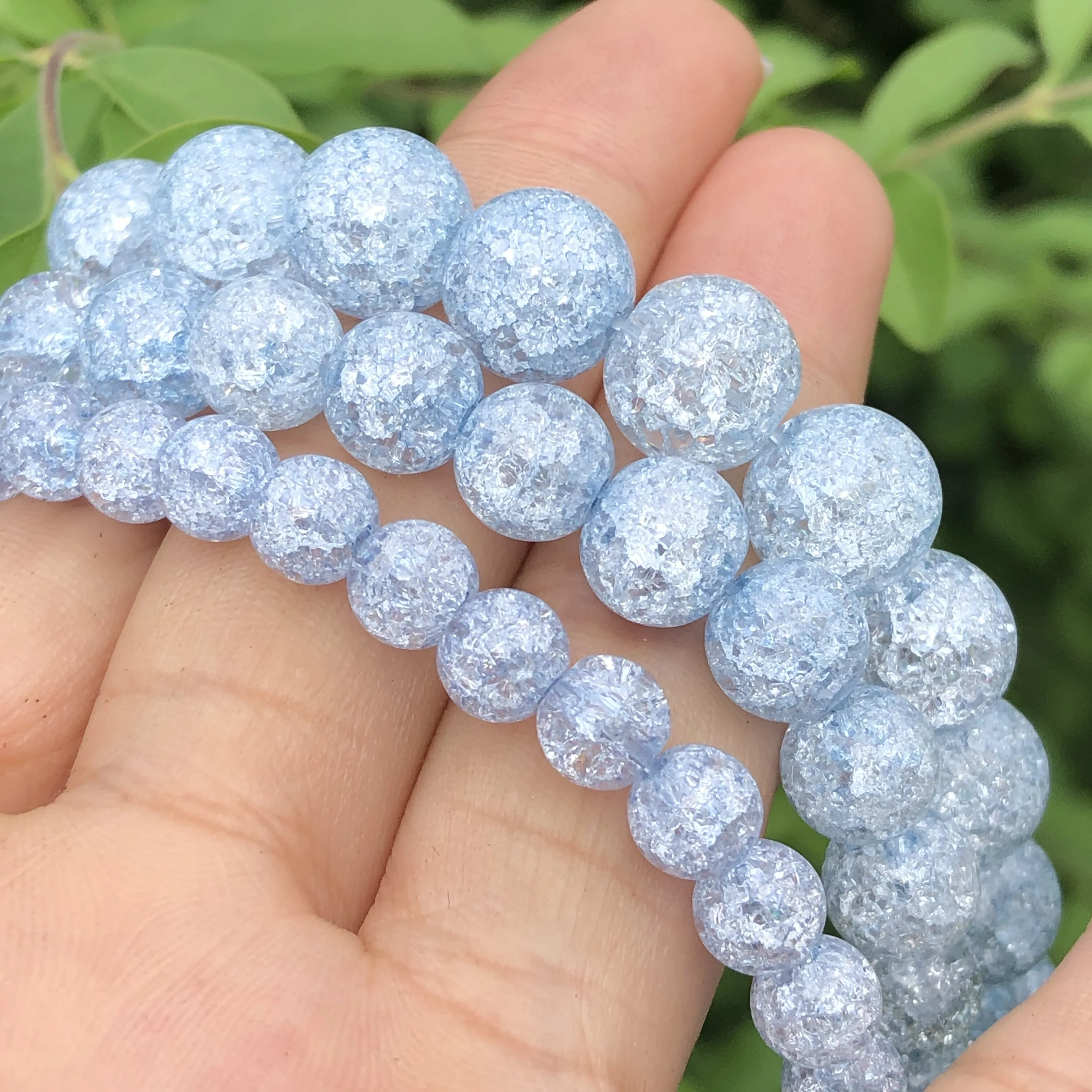 Бусины из кварцевого стекла с трещинами, круглые незакрепленные бусины ААА насыпью для изготовления ювелирных изделий, браслетов, ожерелий, нитка 15 дюймов, синие