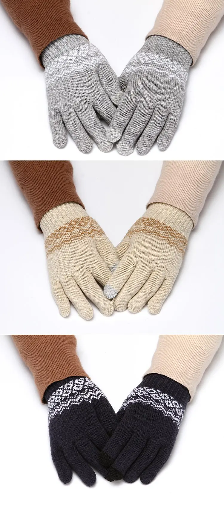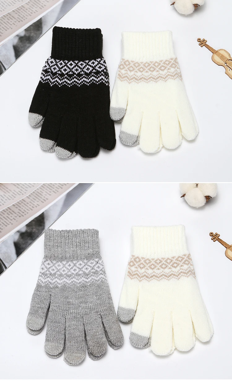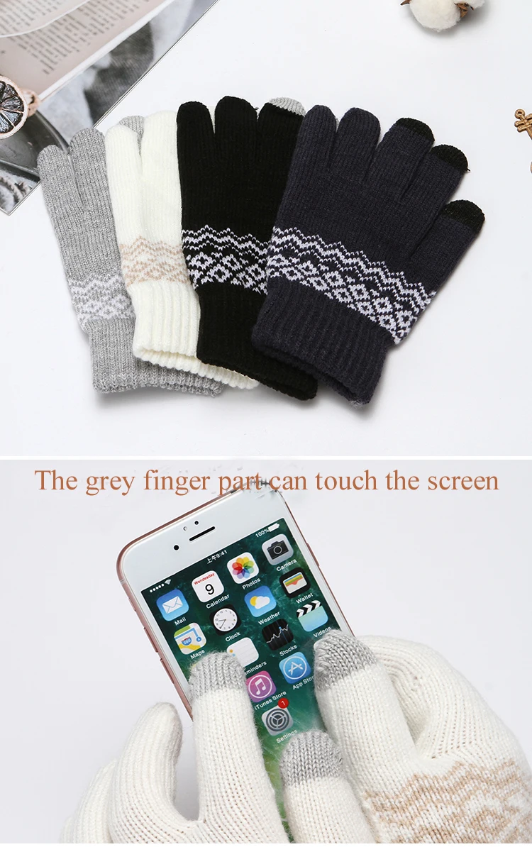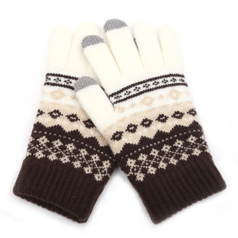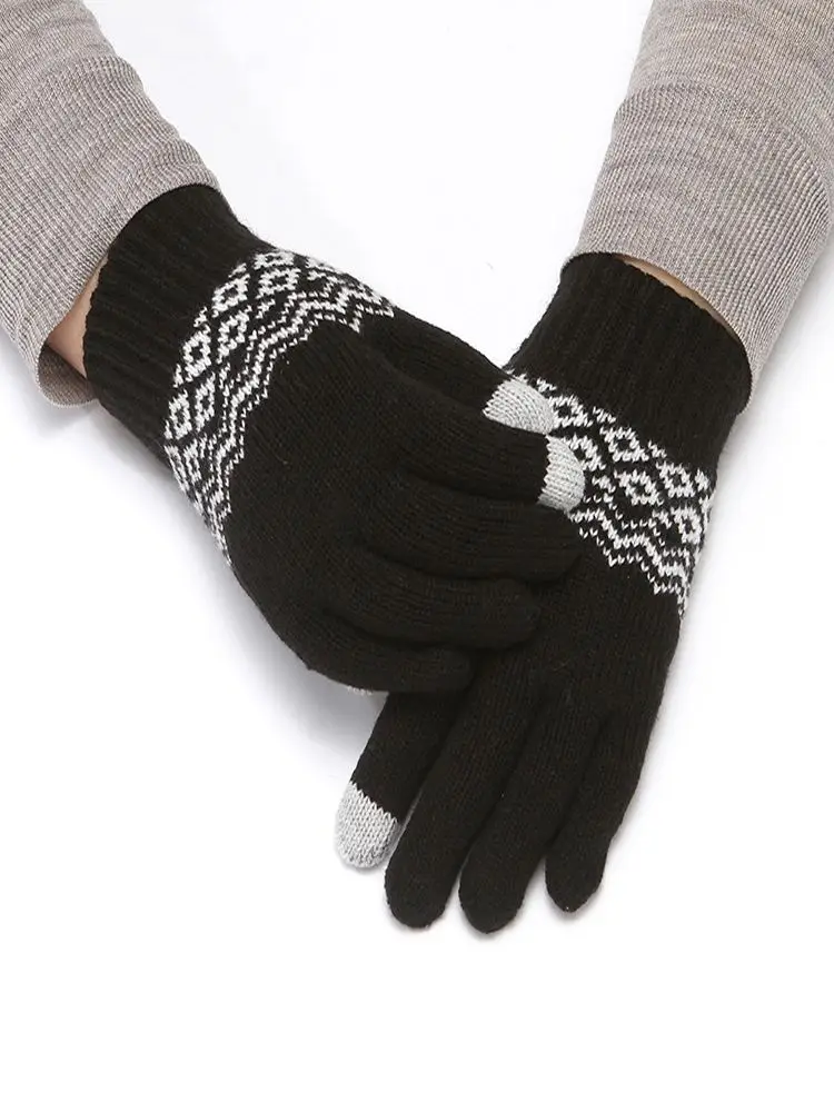 Зимние перчатки для сенсорного экрана сохраняют тепло, вязаные перчатки с цветочным узором для женщин и мужчин, плотные лыжные ветрозащитные варежки, перчатки, рождественский подарок