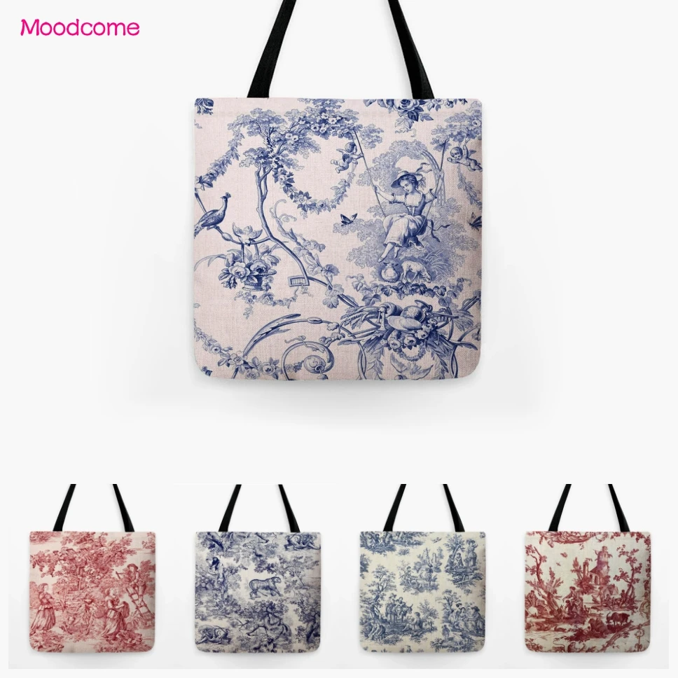 Классический французский мотив холст де Джой темно-синие чернила принт традиционный французский арт подушка чехол из хлопка и льна диван наволочка
