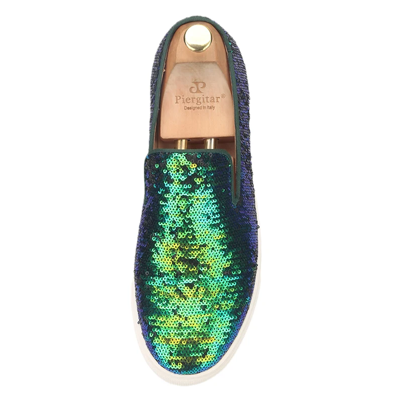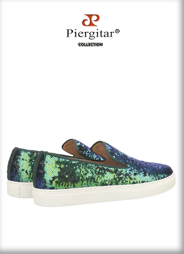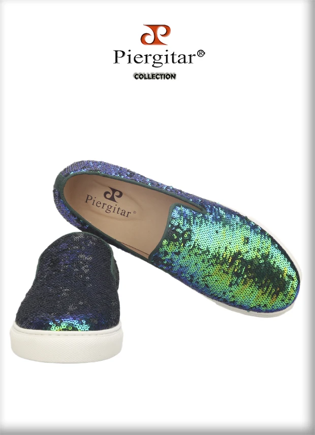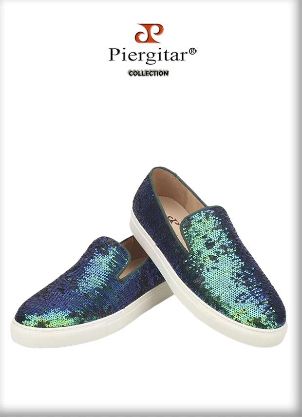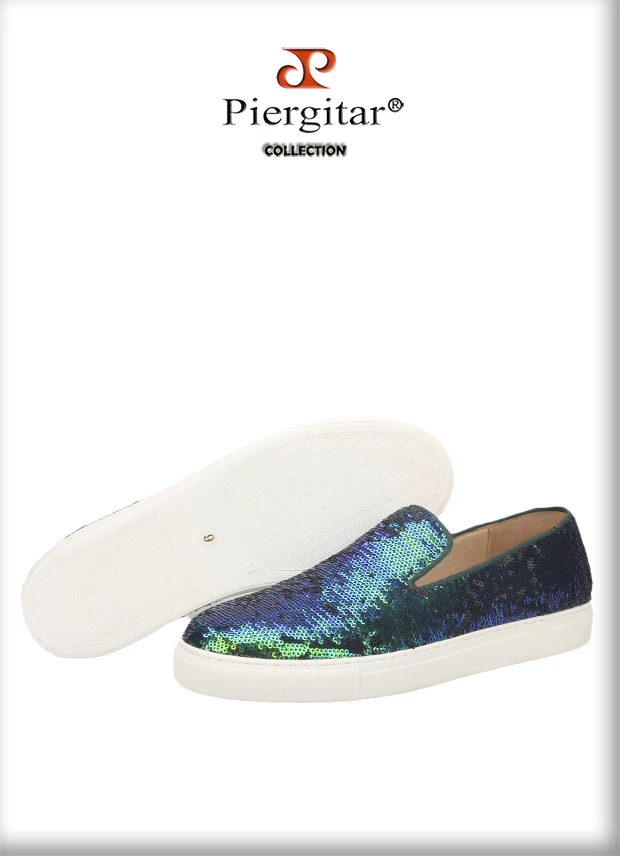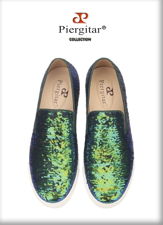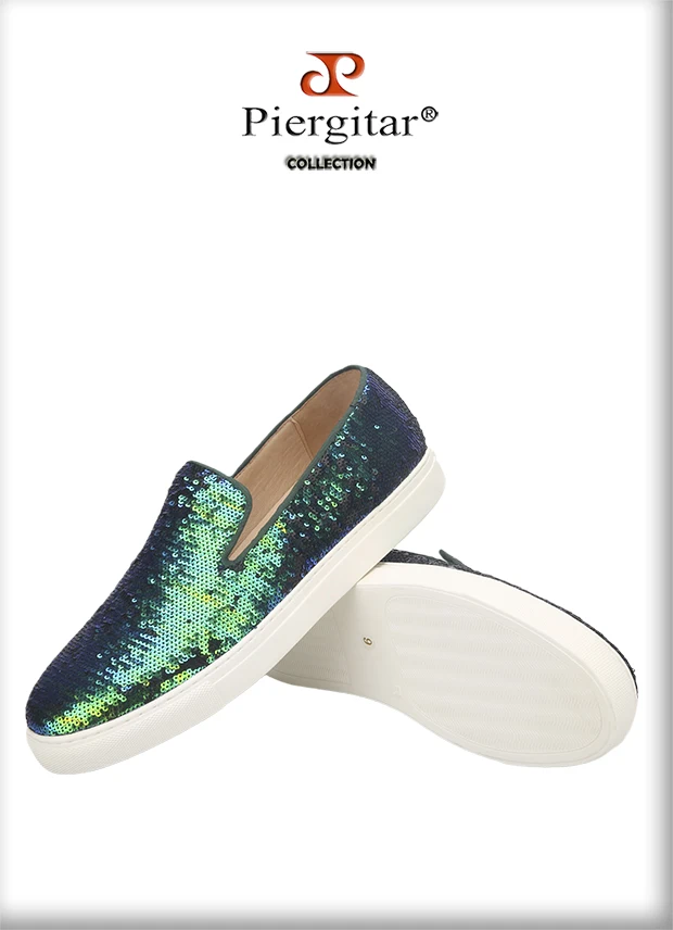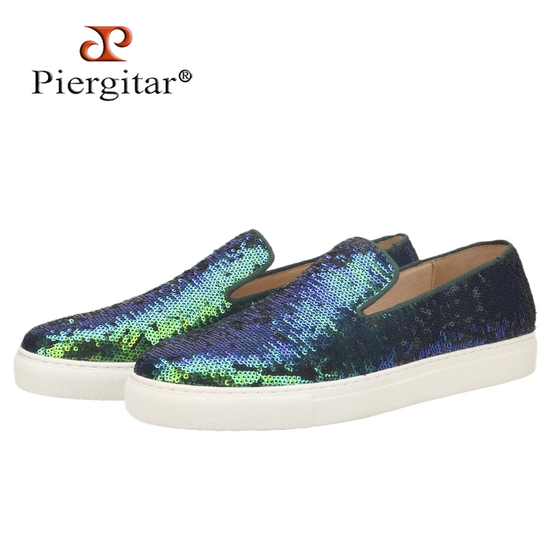 Стильные мужские кроссовки Piergitar ручной работы с бирюзовыми блестками, стелька из кожи, меняющая цвет, мужские лоферы, увеличенная подошва
